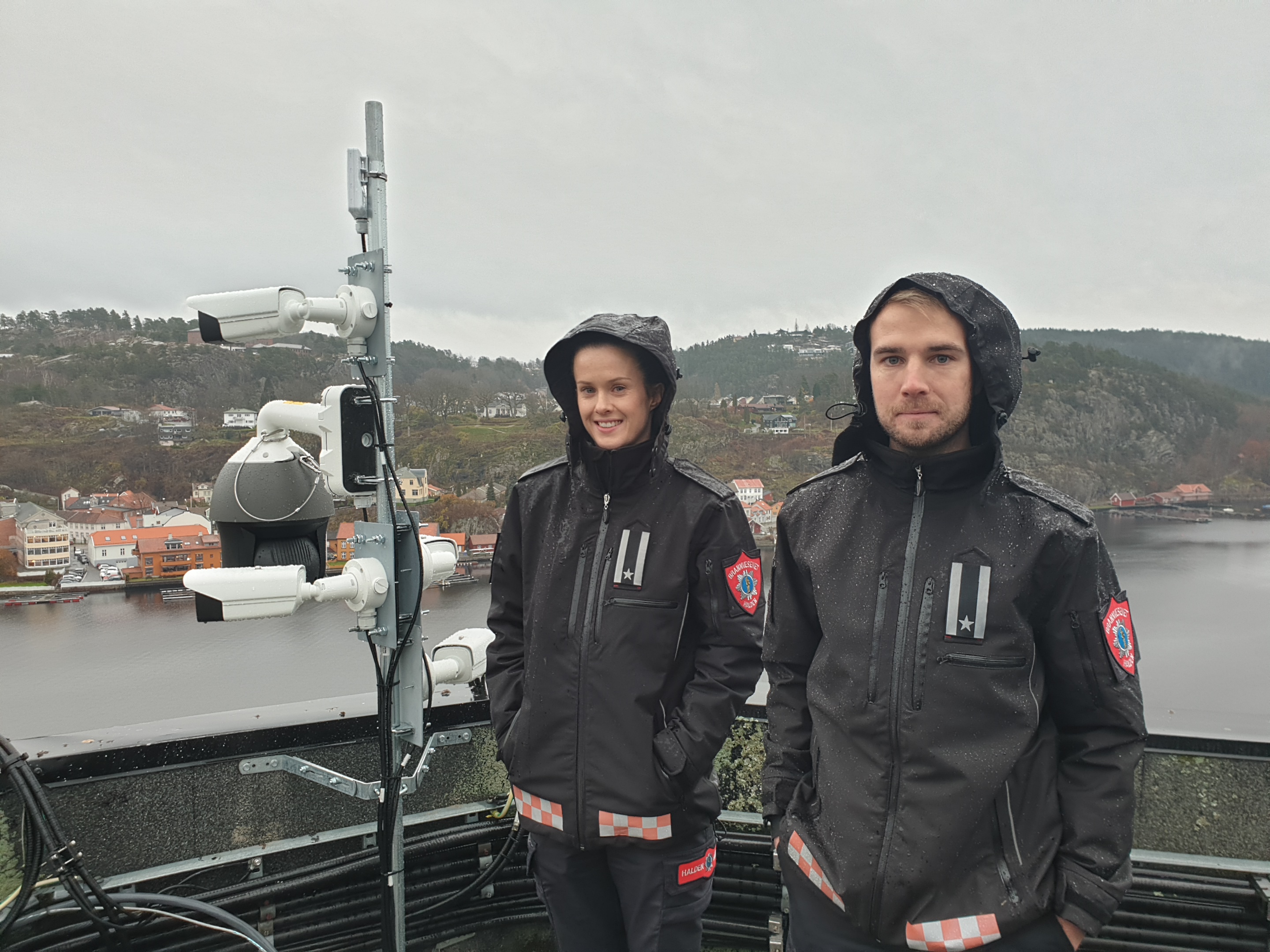 Tre steder i byen – fra toppen av kornsiloen, Saugbrugspipa og brannstasjonstårnet – overvåkes døgnet rundt den verneverdige trehusbebyggelsen på Sørhalden, Damhaugen og Banken. Formålet er å oppdage brann så tidlig som mulig og på den måten hindre spredning.