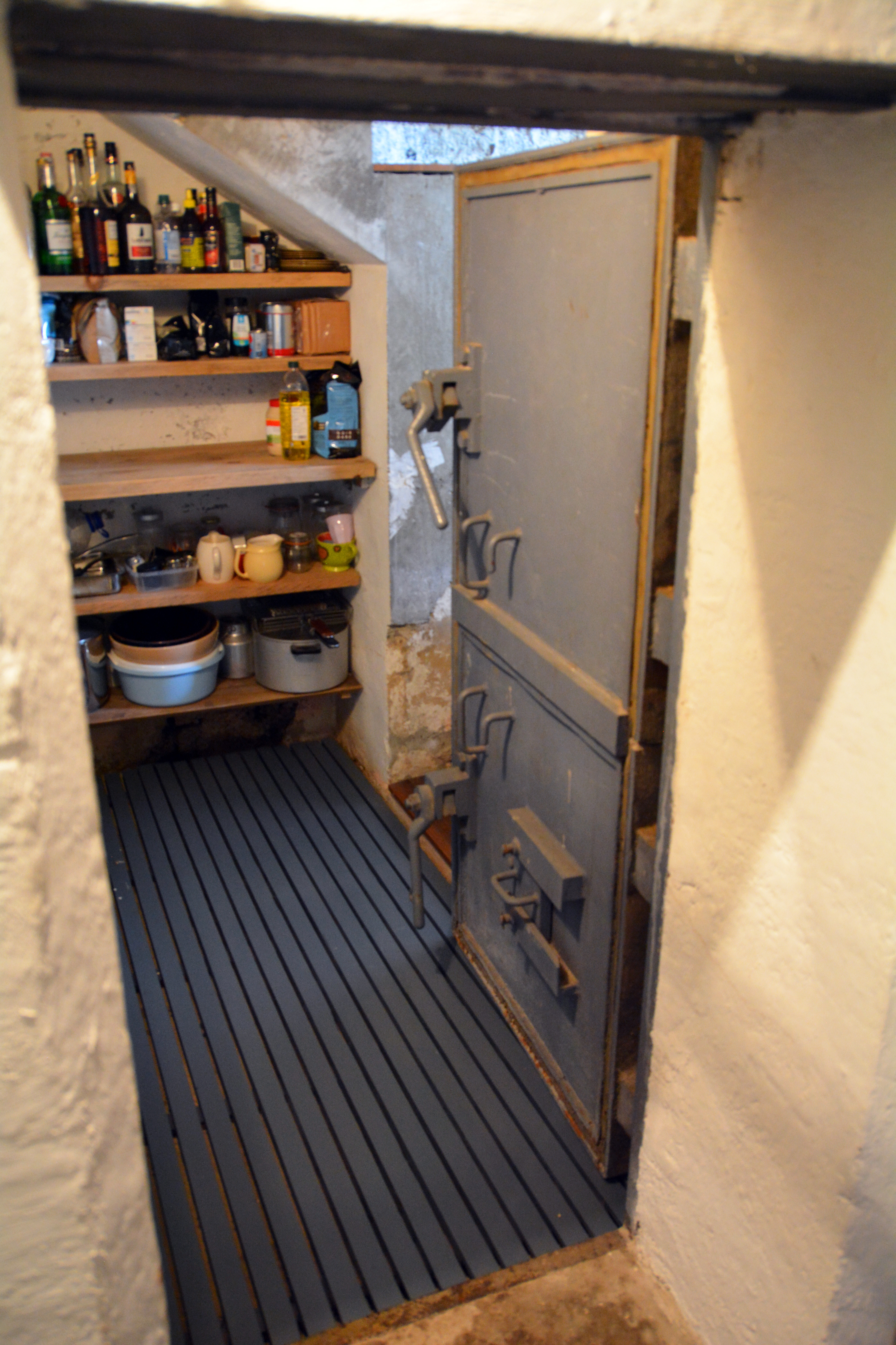 Bunkeren hadde sine to opprinnelige innganger, men det var ikke nok. Det trengtes en større åpning for å binde sammen bunkeren og det store påbygget som skulle romme kjøkken, bad, peis og forbindelse til trappeløpet opp i det som skulle bli andre etasje. To uker tok det et firma å slå seg gjennom og fjerne nok armert betong til å skape den åpningen som trengtes. Den siste biten valgte firmaet å fjerne med dynamitt, noe som skulle skape bygningsskader de lever med den dag i dag.