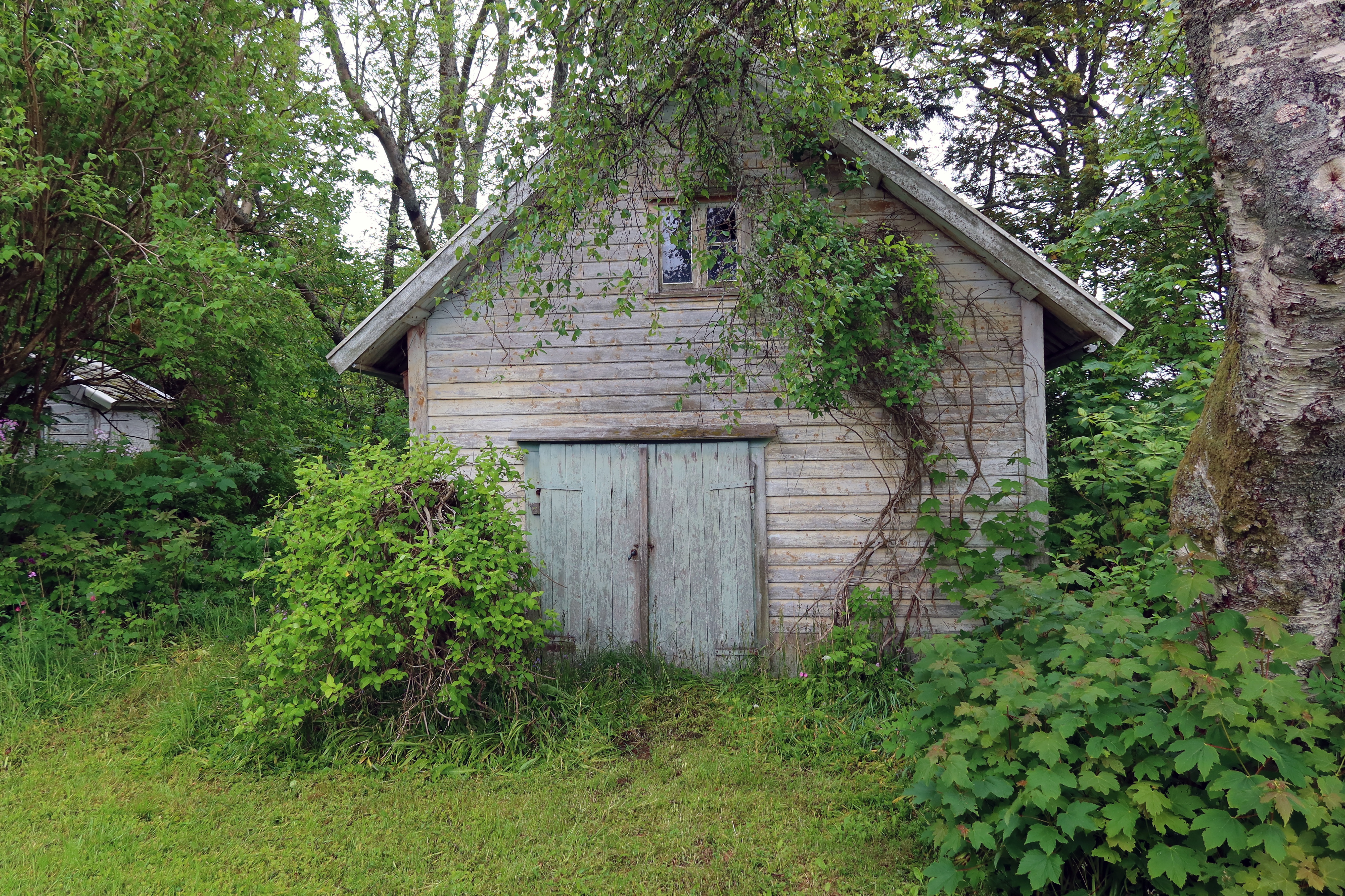 Innimellom måtte hun selvfølgelig også ta fatt i det som måtte gjøres. Hun fikk hjelp av slektninger til å få ordnet taket på vognskjulet, etter at hun ble lei av stadig å ligge der opp og reparere det verste. Også sjøhuset fikk nye vegger, mens det ble lagt nye gulvbord på låven. Der er det spor av nytt og gammelt, materialene bærer preg av gjenbruk. Den romslige bygningen er et grindbygg, utvidet med nye grinder med årene. En gang var det sauer, kyr, hest og høner her, men nå brukes ikke låven til noe, noen gamle sildetønner vitner om tidligere tiders aktivitet.