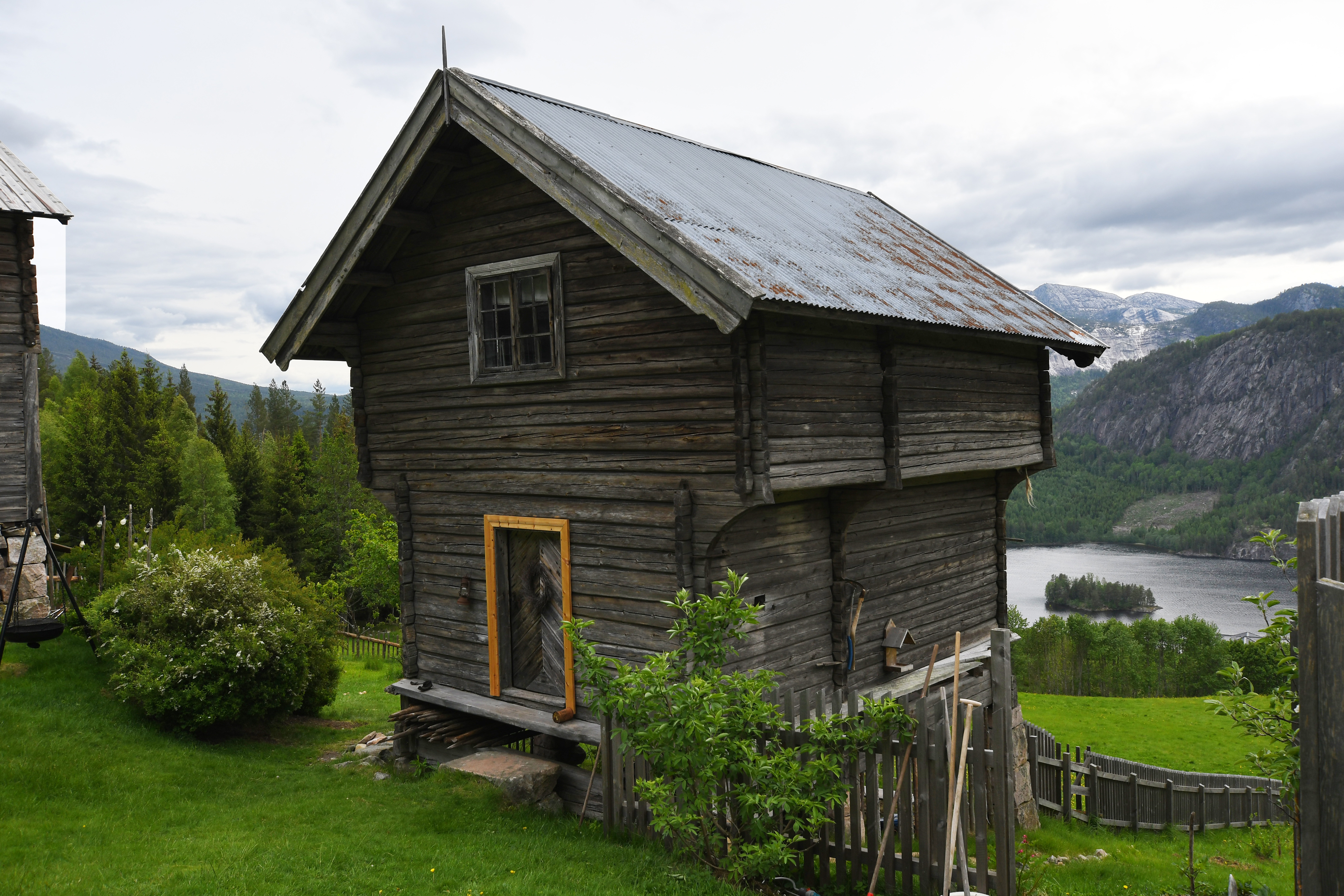 – Det er en frihet vi tok oss. Tre vegger er kledt. Spikerslagene stakk ut både på våningshuset og stabburet, så det har egentlig vært halvferdig her siden 1910. Etter hvert satte vi bislaget på igjen fordi det var demontert under oppussingen. Huset her ble satt opp av gårdbrukeren, som også var byggmester. Han hadde ei sag som stod ut på pynten her nede. I dag er det ikke mye igjen av den, men det hadde vært fryktelig moro å få den opp og i gang igjen. Man må jo drømme litt, smiler Thomas.