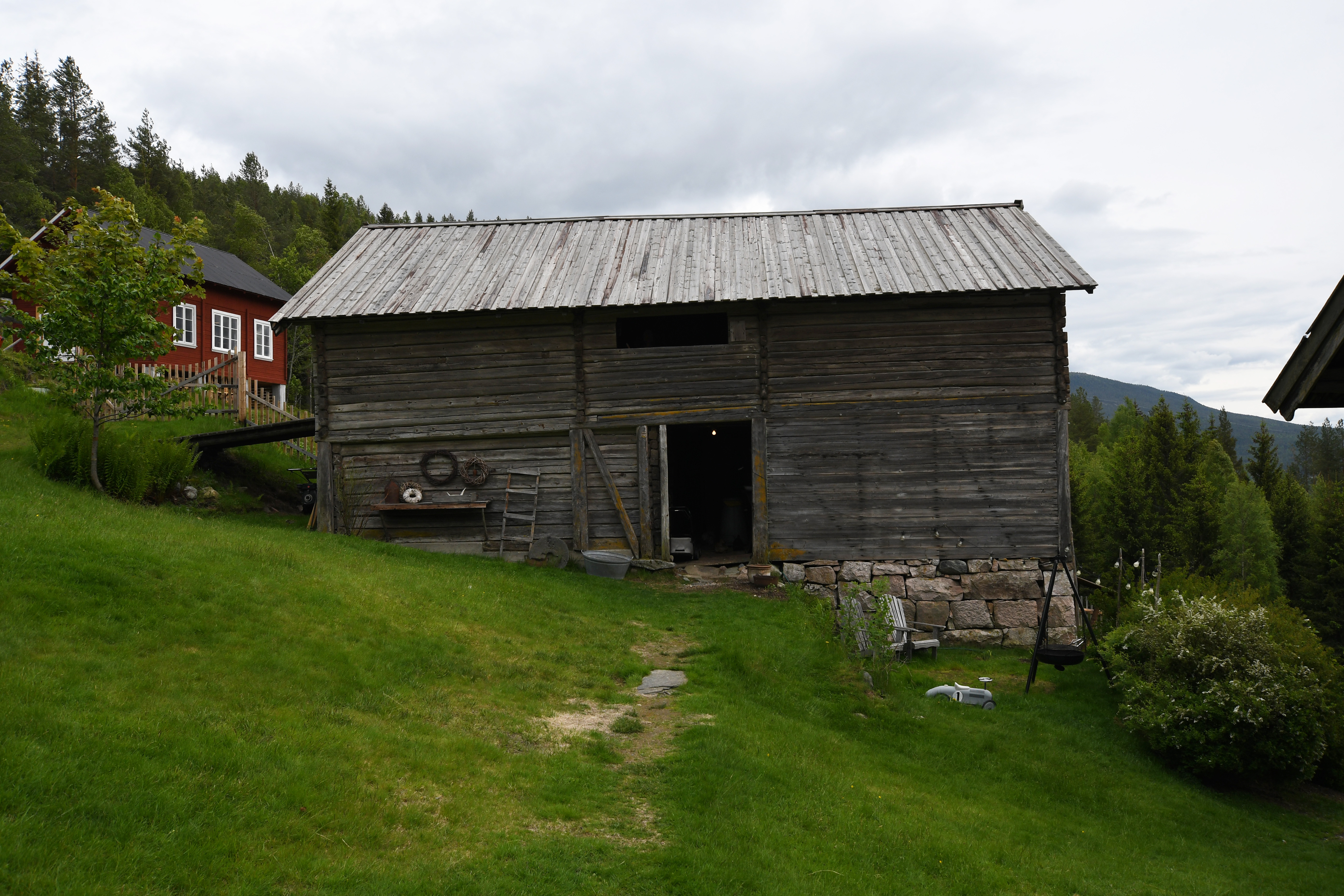 Inntrykket av forfall ble enda sterkere av at halve låvetaket var blåst av og stabburet manglet tre plater på taket. Men slik kan man se forbi når ønsket om en slik plass er sterkt nok, for hus kan man jo gjøre mye med!