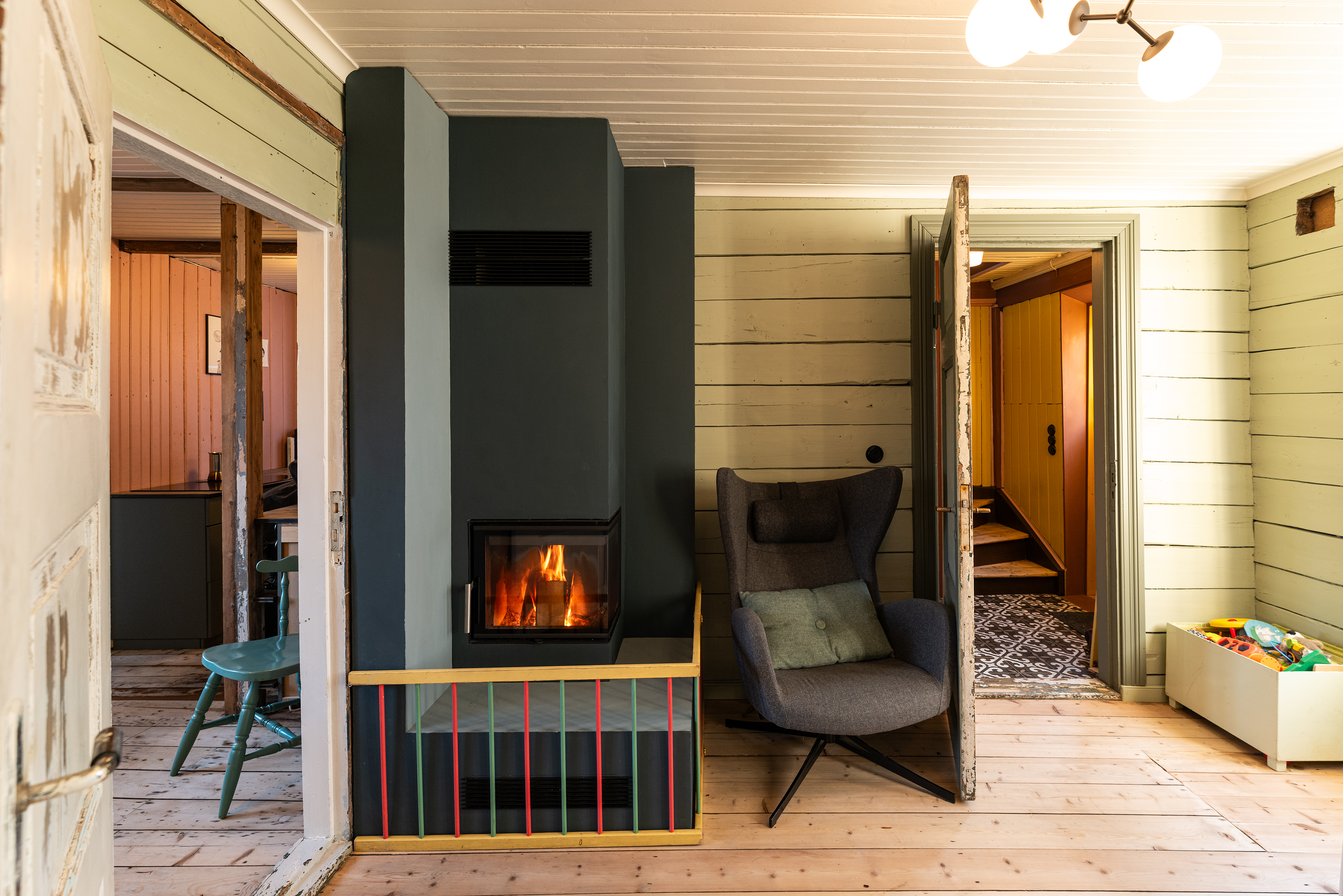 -På dette lille arealet har vi to stuer, et soverom, et gjesteværelse, en sovealkove, kjøkken, bad spisestue og stor kjeller. Det er rart å se hvordan dette fungerer, også med tanke på at trenden er at vi må klare oss med mindre plass i fremtiden. Vi har hatt det gøy med farger. Noe må ennå skrus på, justeres, men vi har kommet langt. Her har det vært en vindusrestauratør med kompetanse på gamle farger, en lokal fargehandler og oss selv. Vi har satt sammen disse tre erfaringene og kommet frem til fargevalg. Jeg fikk nøklene i desember 2020, startet i juli 2021, og flyttet inn i august 2022. Da var det mulig å bo der. Det er jo ikke det samme som at det var pent, eller veldig komfortabel. Nå, etter enda et år, begynner det endelig å gå seg skikkelig til, forteller Siri Børs-Lind.