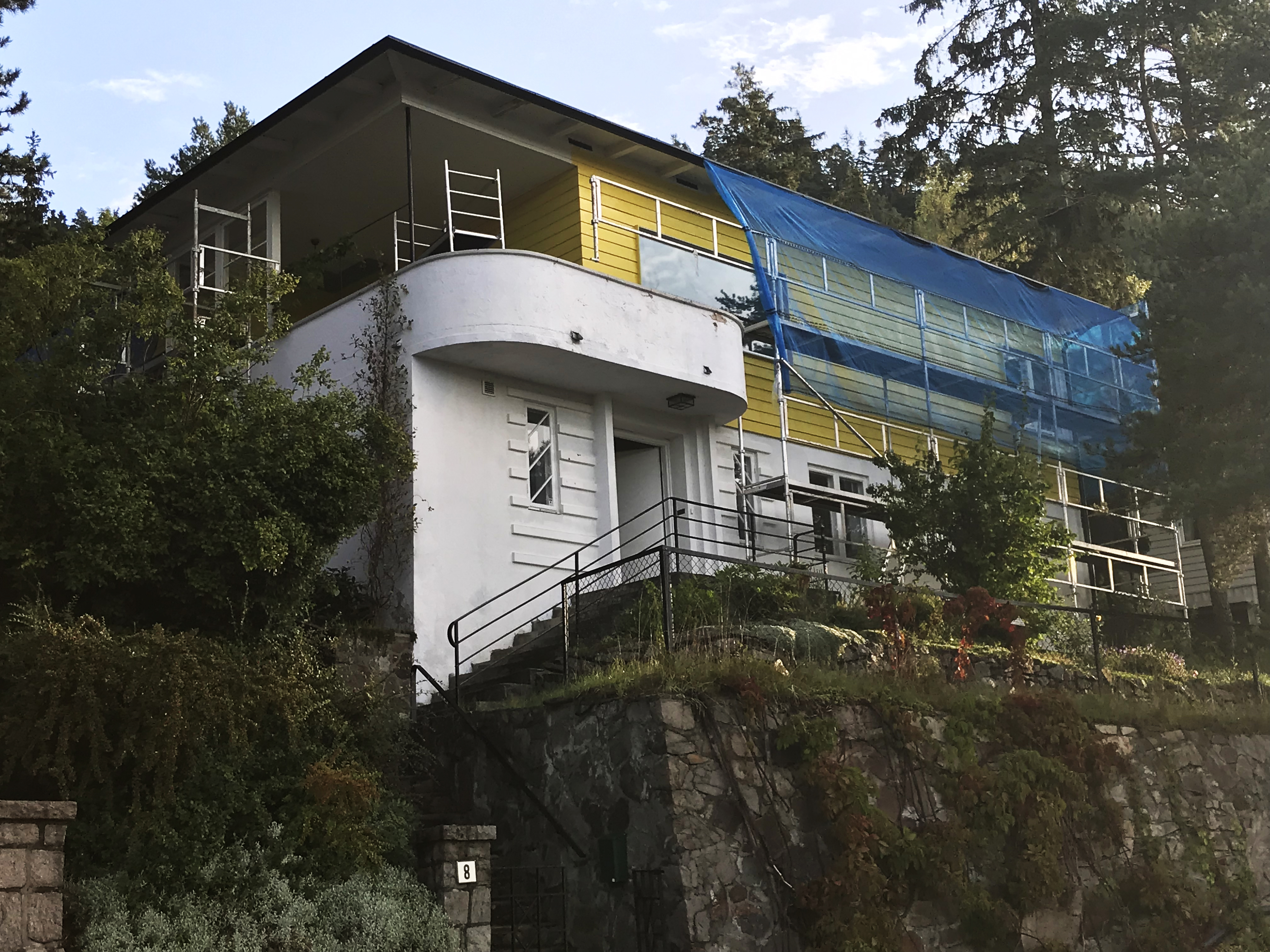 Her var det ingen tvil – mye av den funksjonalistiske fargeskalaen var representert i husets fasader, og det ville være en spennende oppgave å sette sammen alle de opprinnelige fargene igjen.