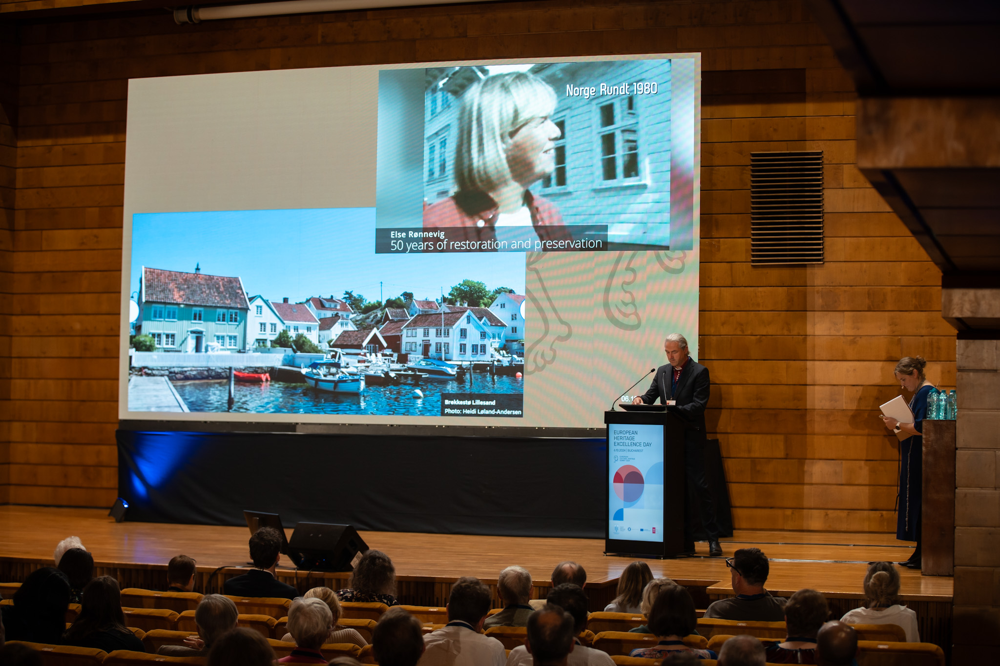 «Ola» er Ola H. Fjeldheim, generalsekretær i Fortidsminneforeningen, og presentasjonen i ord og bilder gjennomførte han under Excellence Day søndag 6. oktober, dagen før selve prisutdelingen.
