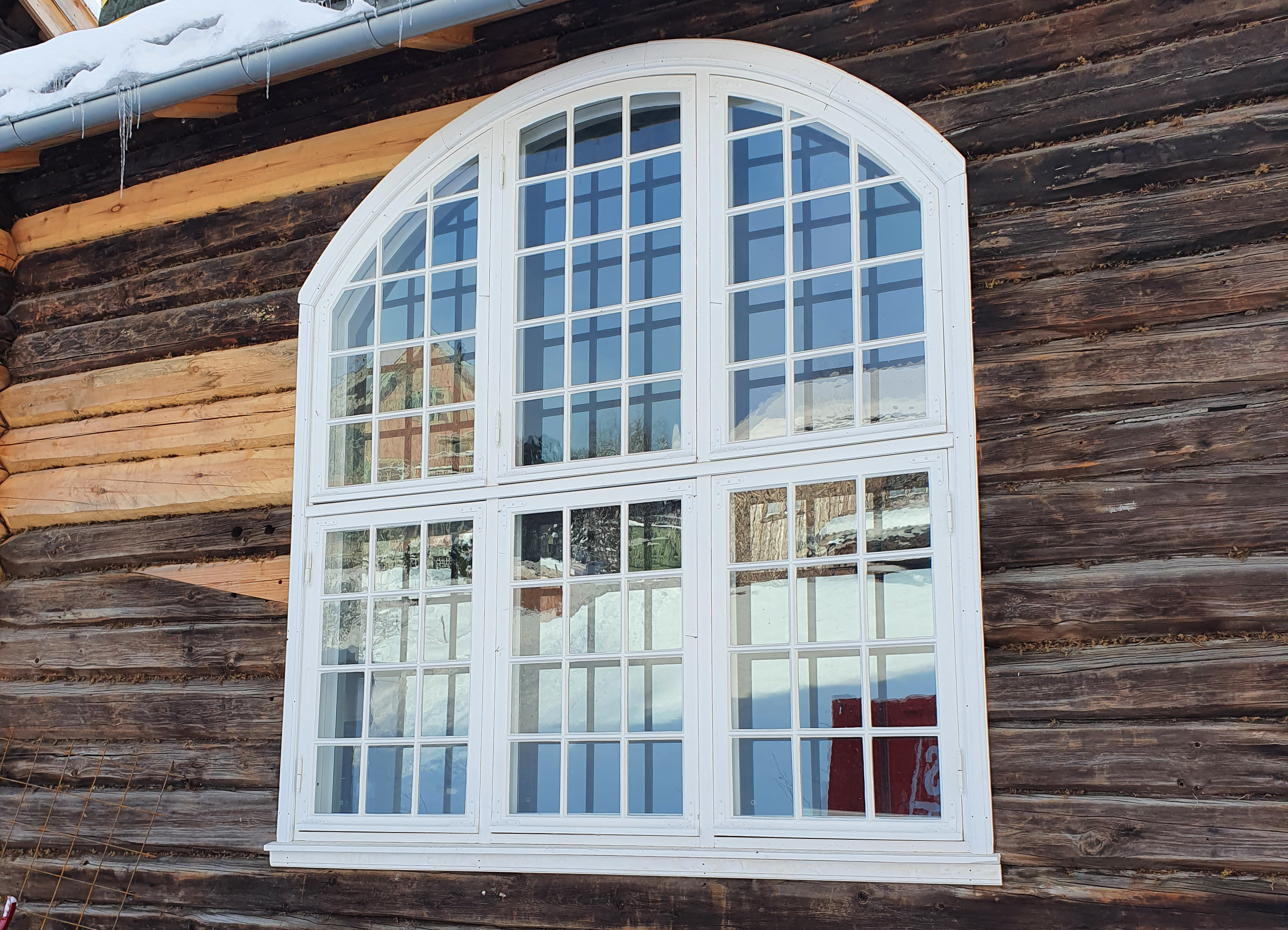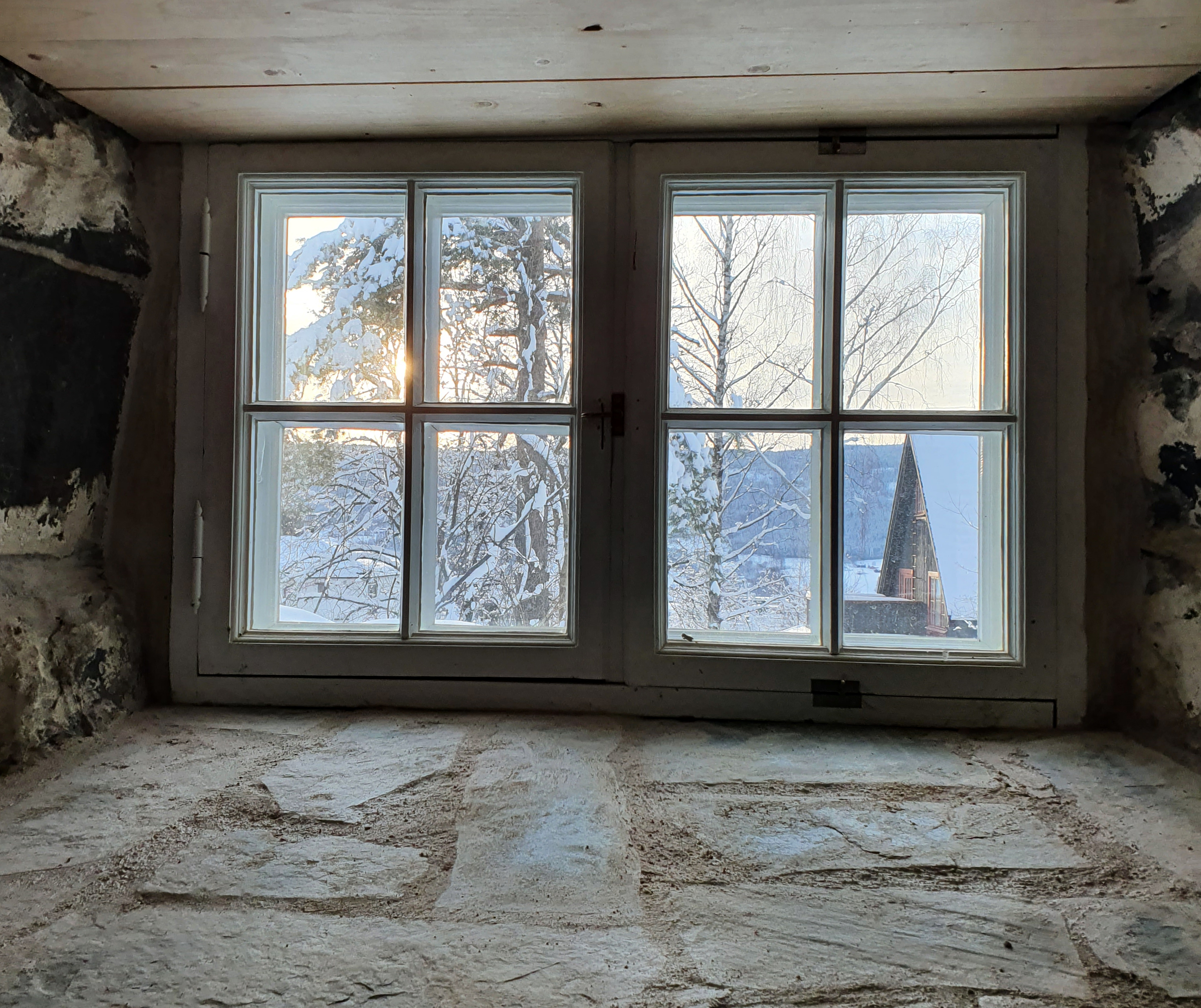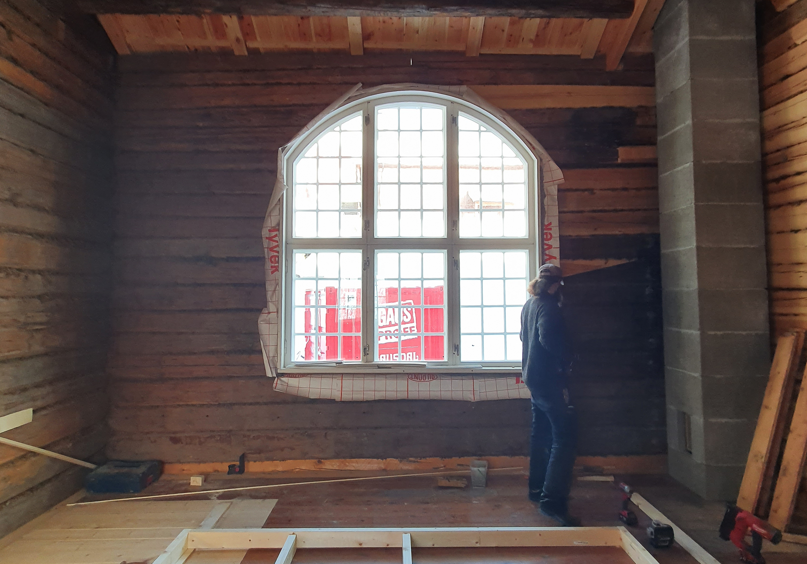 – Utvendig er vi ferdig med det aller meste arbeidet, inkludert istandsettingen av det tidligere så skakke uthuset. Alle vinduene er restaurert og tilbake på plass, se så flott det store buede vinduet som slipper lyset inn i atelieret er blitt, sier Mathilde fornøyd.