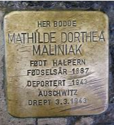 Mammas foreldre Jac og Mathilde Maliniak ble deportert og drept i Auschwitz i februar 1943. Mamma flyktet til Sverige og overlevde. I 2014 ble det lagt ned snuble-steiner for Jac og Mathilde på hjørnet utenfor Elgeseter gate 30B. Jeg var til stede da de ble lagt ned, det var veldig sterkt. […] Uansett: Jeg håper at den sterke historien om Jac og Mathilde Maliniak vil følge med historien til den vakre Jugenddronninga! Vennlig hilsen Jac og Mathildes datter-datter Liv Daasvatn, Oslo»