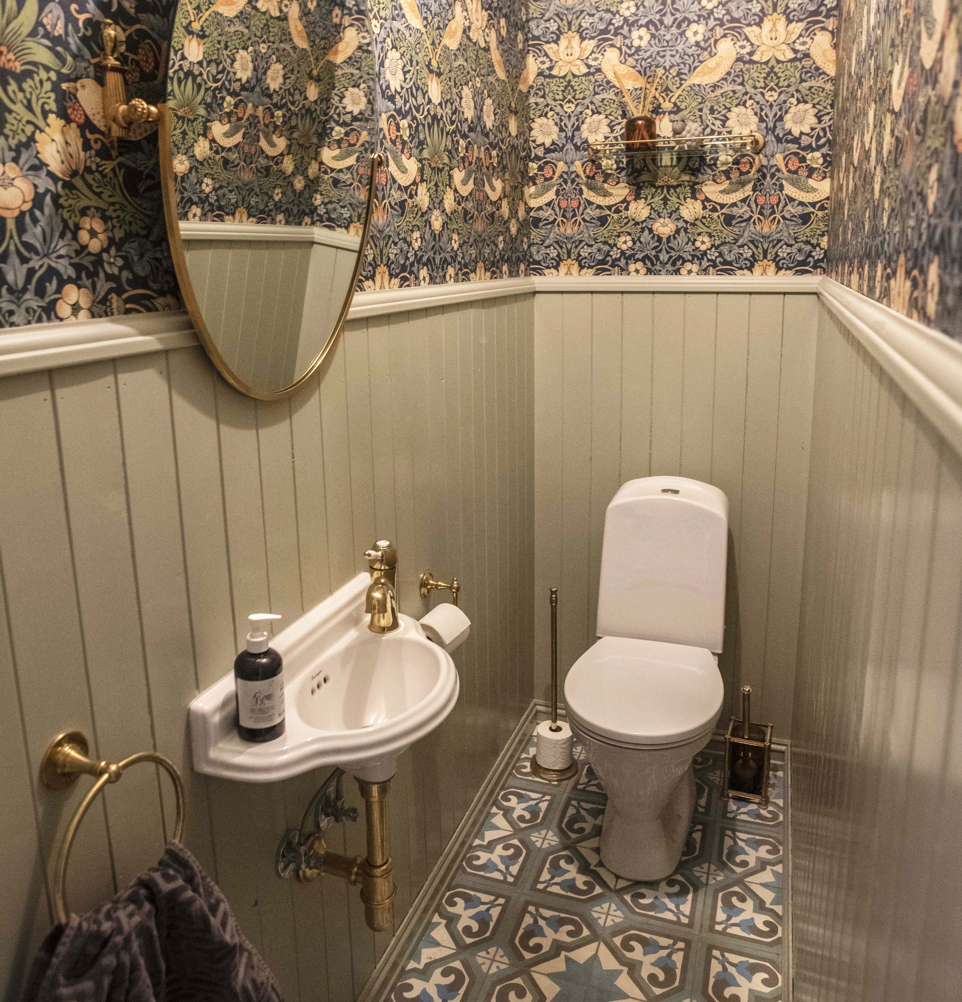 De første rommene vi gikk løs på var hovedsoverommet, kjøkkenet og badet. Før vi kunne flytte inn var det essensielt å få disse i stand, da de var så og si ubeboelige. Badet var lite med et enda mindre toalettrom. Her hadde flittige håndverkere før oss tapet fast rufsete ledninger til trepanel under flisene. En brannfelle vi i dag er veldig glade for at ble oppdaget.