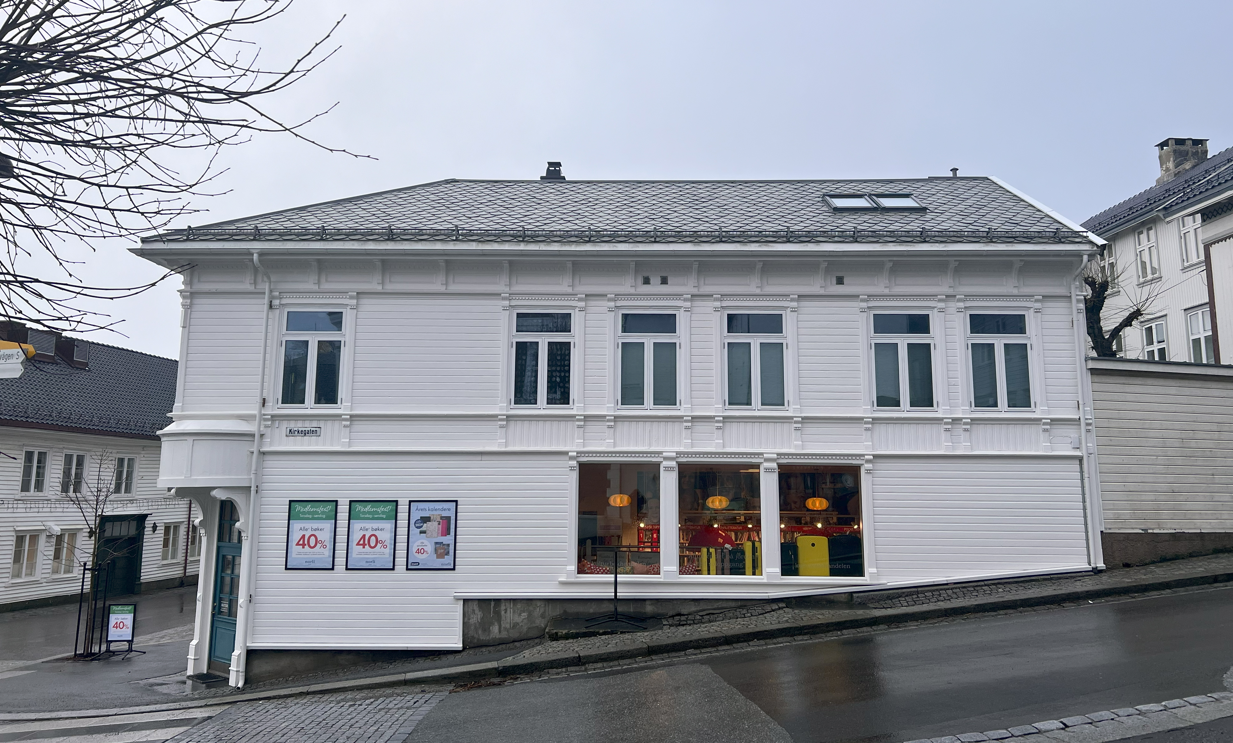 Vi er i Kulturbokhandelen i sentrum, I en velholdt hvit bygning på Torvet holder Åshild Vere Jacobsen til. Hun kjøpte huset i 2012 og begynte forvandlingen i 2017.