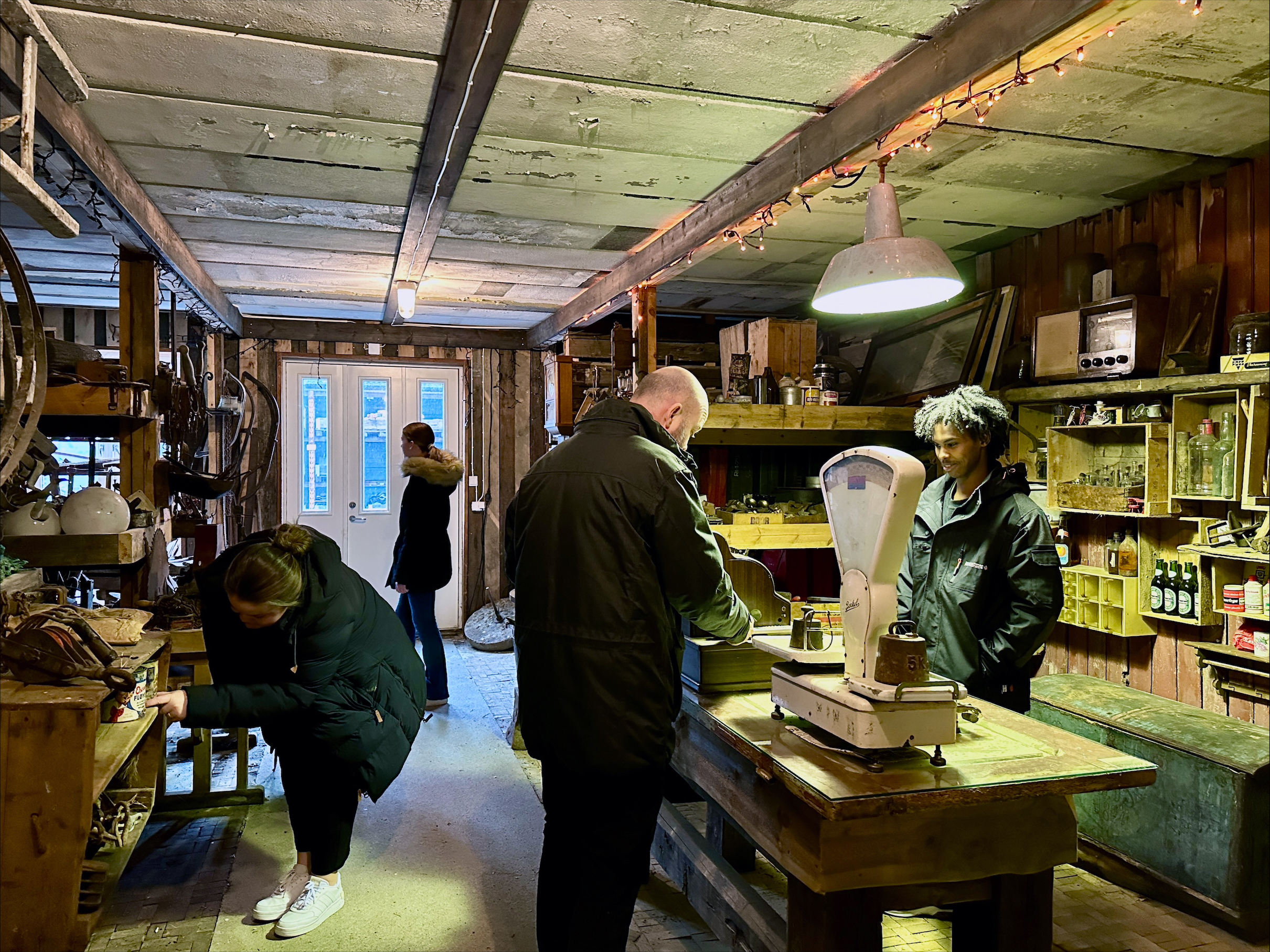 Og det er virkelig som en liten gate, her midt i et industriområde. Folk kommer kanskje innom en dag på jakt etter en dør, noen vinduskarmer, kanskje et beslag eller noen takstein. Og så er de tilbake neste lørdag, men da er jaggu ungene, svigermor og fatter’n med! En dag med familien, med opplevelser for store og små; carporten med en Chevrolet 1946, en autentisk melkerampe, en hel vegg full av gjenstander det kan snakkes om i timevis, en båt henger i taket, et komplett bibliotek, en verktøysamling, ølsamling (!), 60-tallsstua. Mannen samler og samler og hviler aldri?