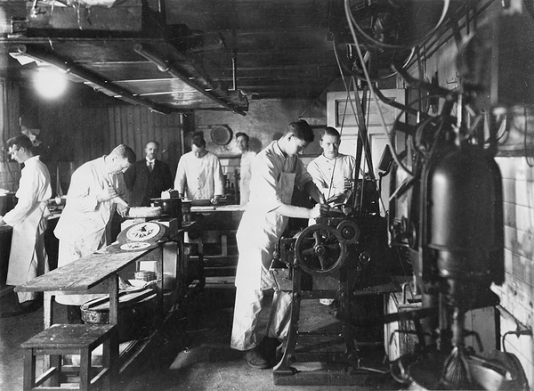 Maten ble servert på stilfulle plettbrett med hanker og runde kakefat med stett. Tunge gullrammer kan ha skjult gyldenlærtapeten som dekket veggene. Dette, sammen med gullforgylte vindusgerikter, sortmalte dørkarmer og store malte rosetter i taket, må ha gitt inntrykk av grenseløs overflod og dramatikk, som seg hør og bør i datidens konditorier.