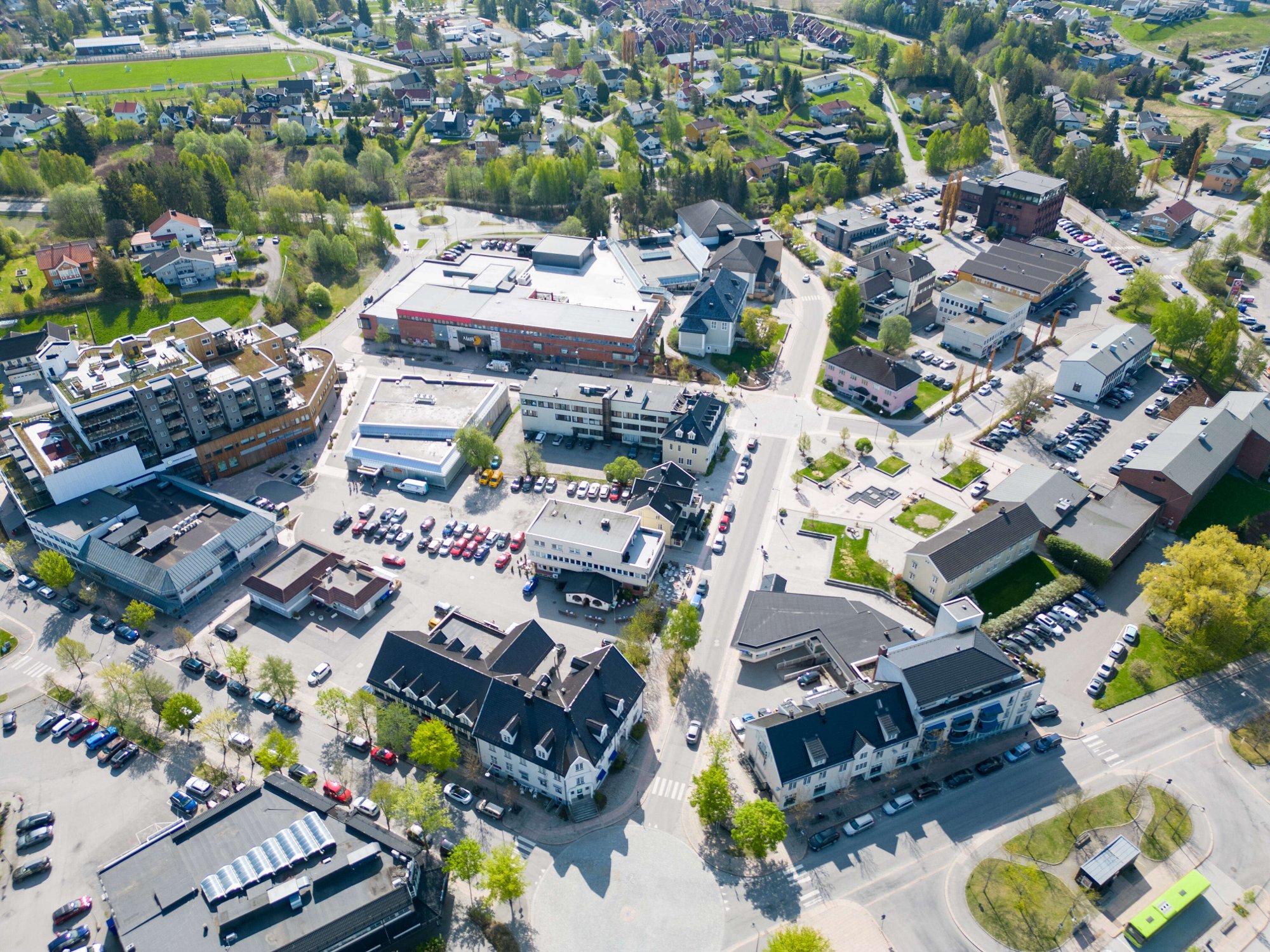– Akkurat her vi står er det et torg midt i sentrum som nærmest former en trekant, og Schiefloegården danner kortveggen på trekanten. Det er en trebygning, og alle bygningene rundt dette torget er av tre, de er fra ulike historiske epoker og veldig fine. Dette er det mest intakte tettstedsenteret som er igjen på Romerike, sier Fjeldheim.