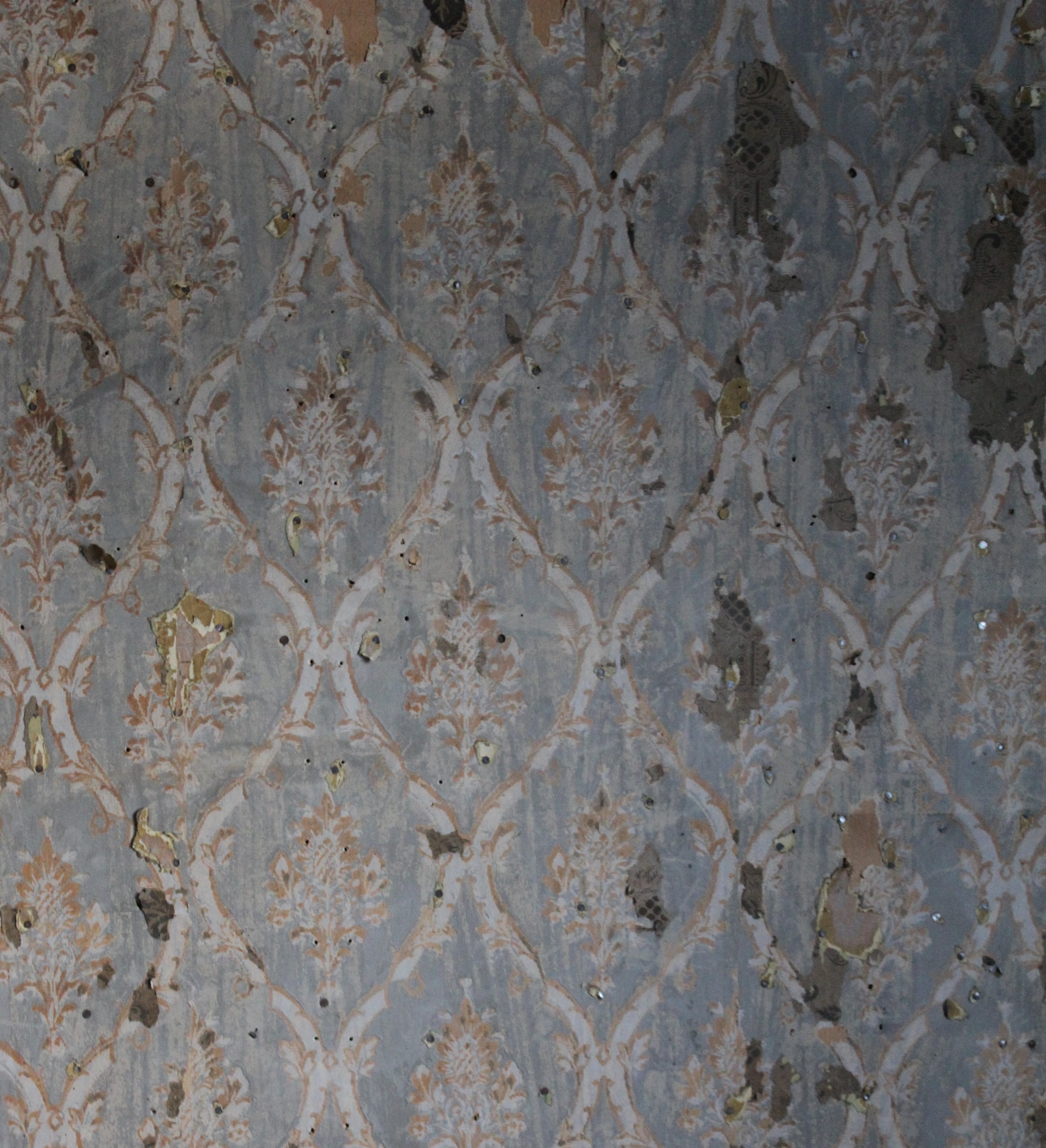Vi starta opp med å avdekke historien lag for lag på vegger, tak og golv. Vi var veldig spente på kva vi kunne finne og vart ikkje skuffa. I bestestova fant vi opp til syv lag tapet, den eldste var trykt på ubleika tjukt papir med blå medaljongar, truleg frå Frankrike. Der var rokokkomønster, jugendtapeter, Art Deco, 30-40 talet med blomemønster og etterkvart funkisstil fra 50 og 60 talet. Fargane har vore mange, men blåfargen var mest framtredande både i tapeter og maling.