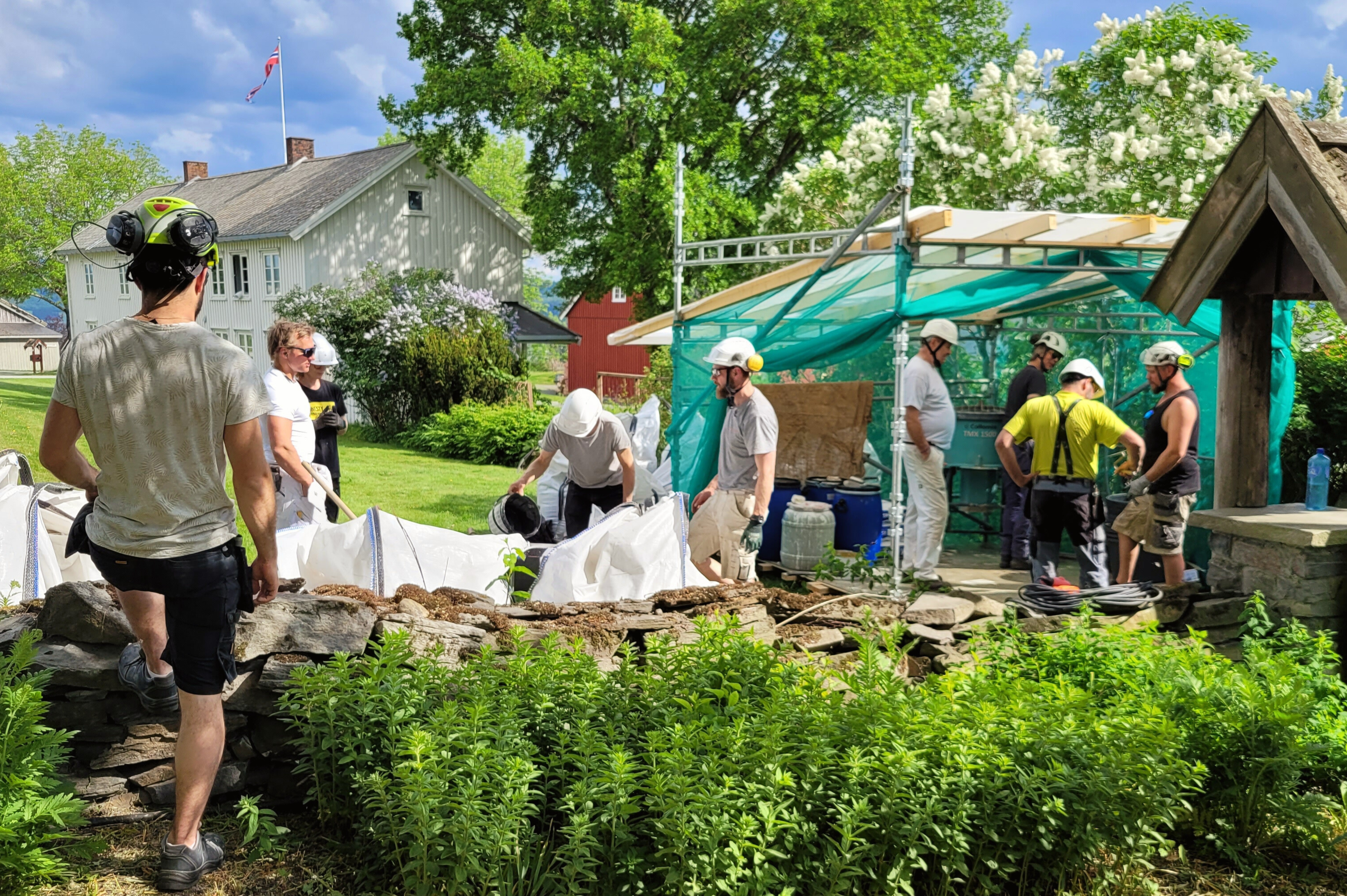 Kurset ble ledet av Fabrica Kulturminnetjenester i regi av Fortidsminneforeningen og finansiert av Riksantikvaren. Murermestrene Terje Berner, Tore Granmo og Geir Magnussen stilte som instruktører. Dette er tredje gang Fortidsminneforeningen arrangerer murerkurs på Sakshaug i Trønderlag.