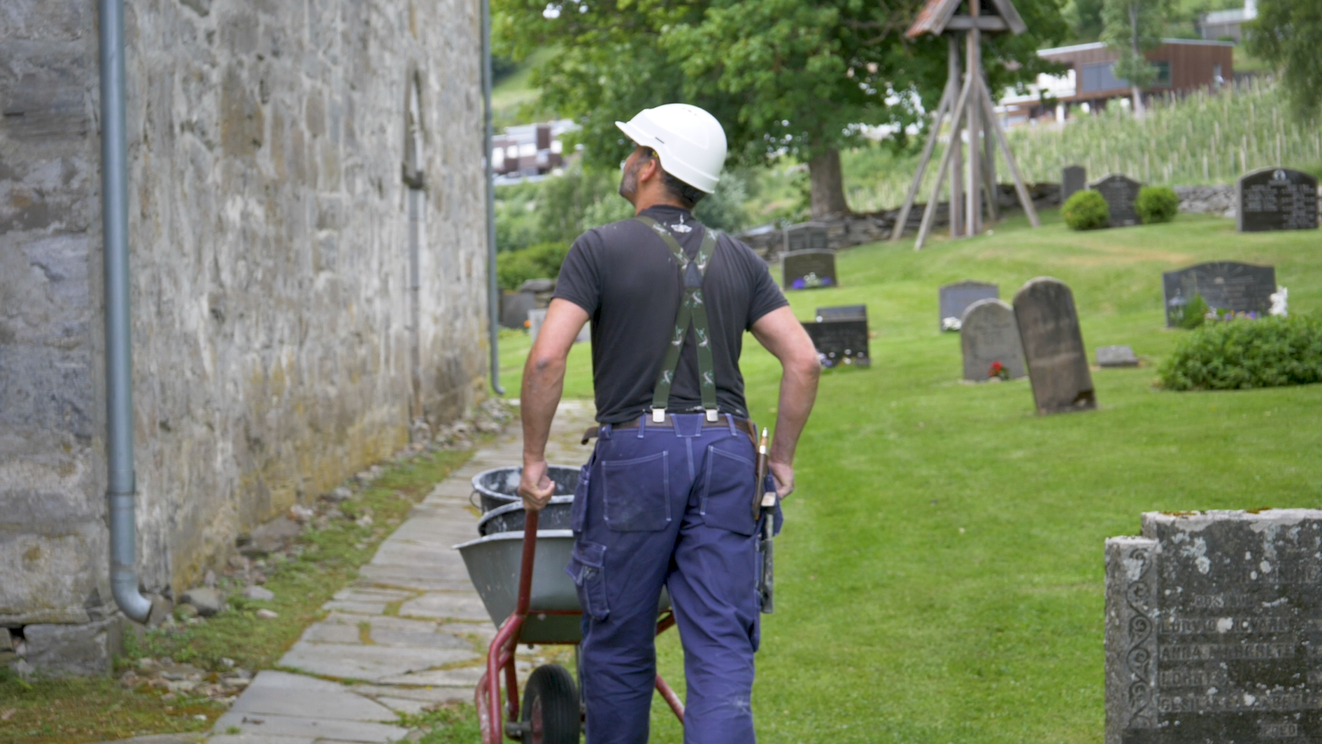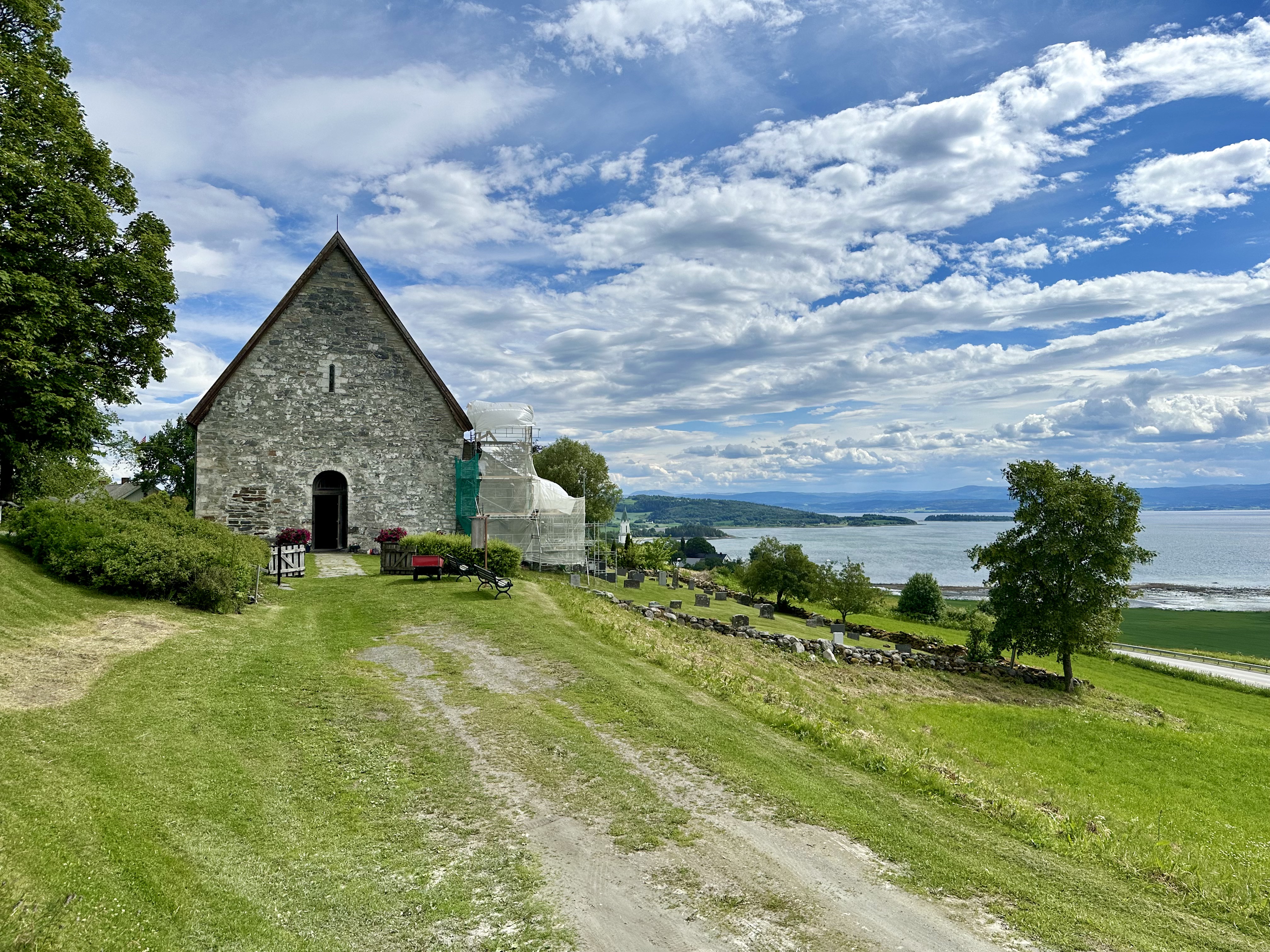 Siden har lokalsamfunnet på Inderøya aldri vært helt klar til å lukke døra på kirken. På denne varme trønderske sommerdagen i juni 2024 dekker en stillas sørveggen og unge og eldre murere står side om side med spader i hånd.