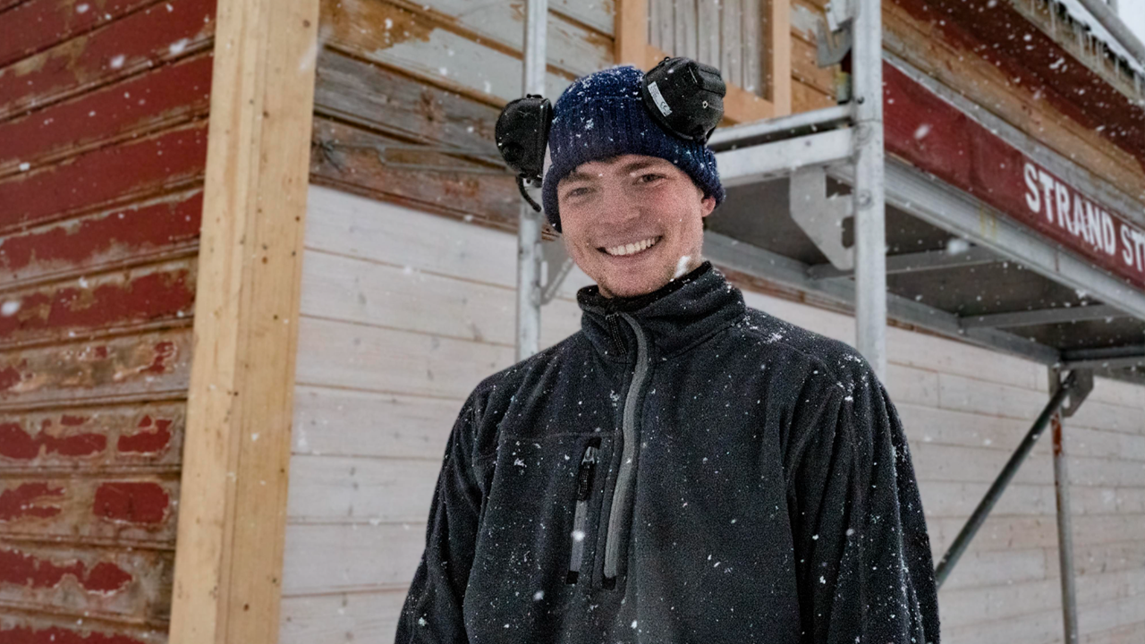 Ask Synnevåg er en 25 år gammel tømrer fra Tromsø som er selvstendig næringsdrivende og student på fagskolen i nord på «bygningsvern i nord 1»