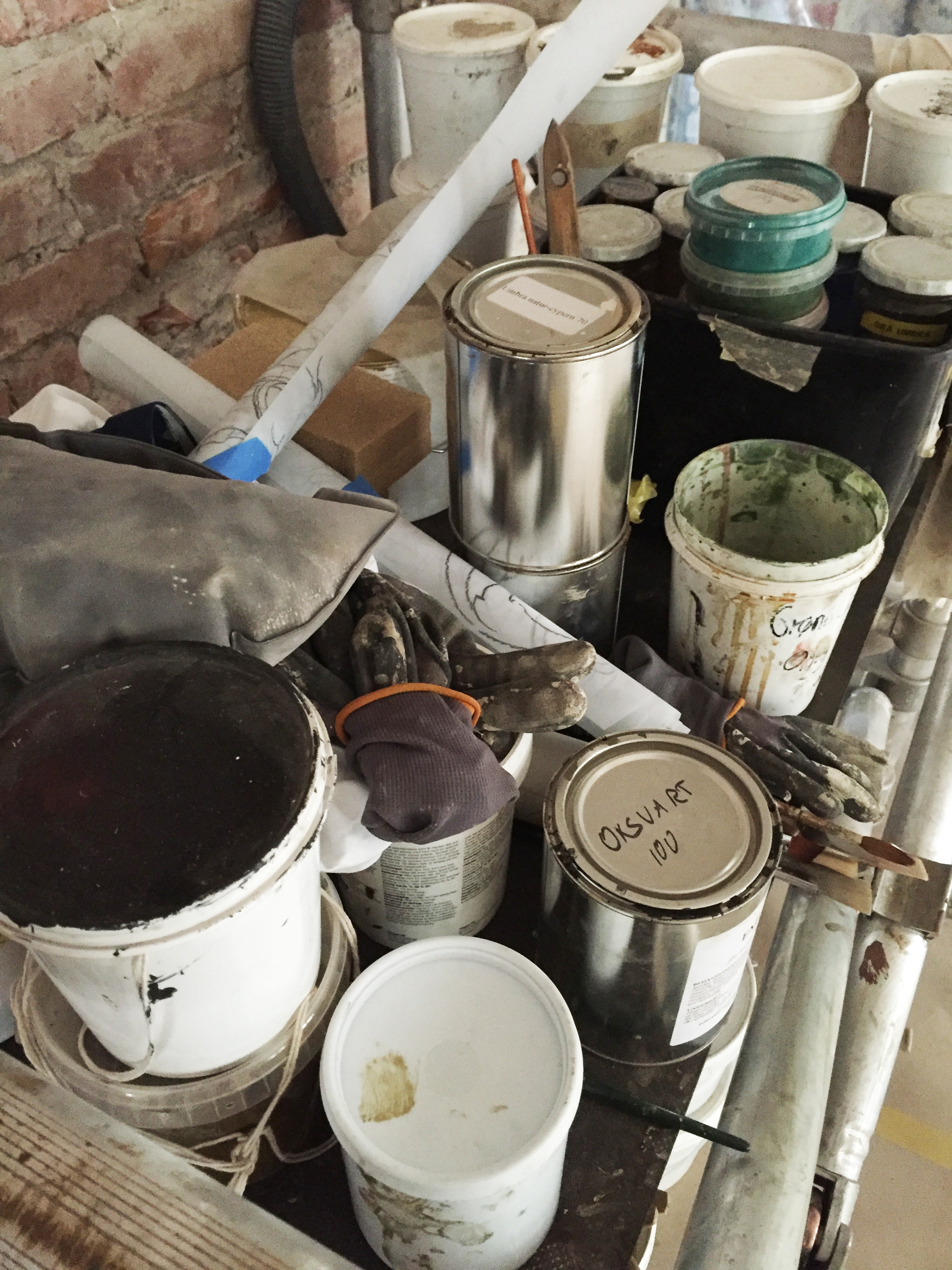 Hun forteller at det alltid er en utfordring å blande riktig farge, og at det må gjøres på stedet. Limfarge er mye mørkere før den tørker, så ofte må det mange omganger til før man finner den perfekte blandingen av fargepigmenter.