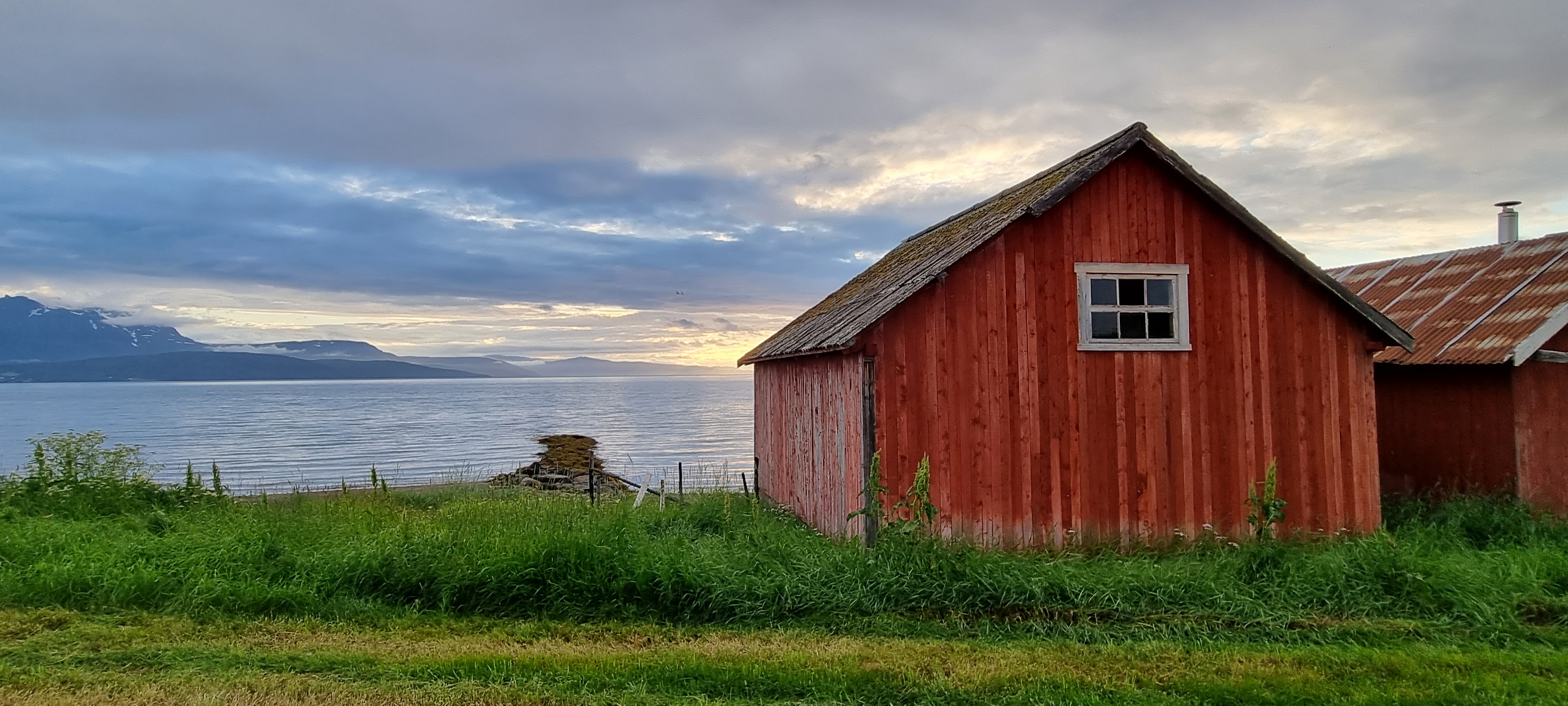 Etter kurset malte jeg selv ferdig røstveggen. Dermed var hele naustet malt ett strøk høsten 2023, samt at vinduet var satt i stand og malt med linoljemaling. Jeg valgte å vente til neste sommer med å male andre strøk, da været ble for fuktig.