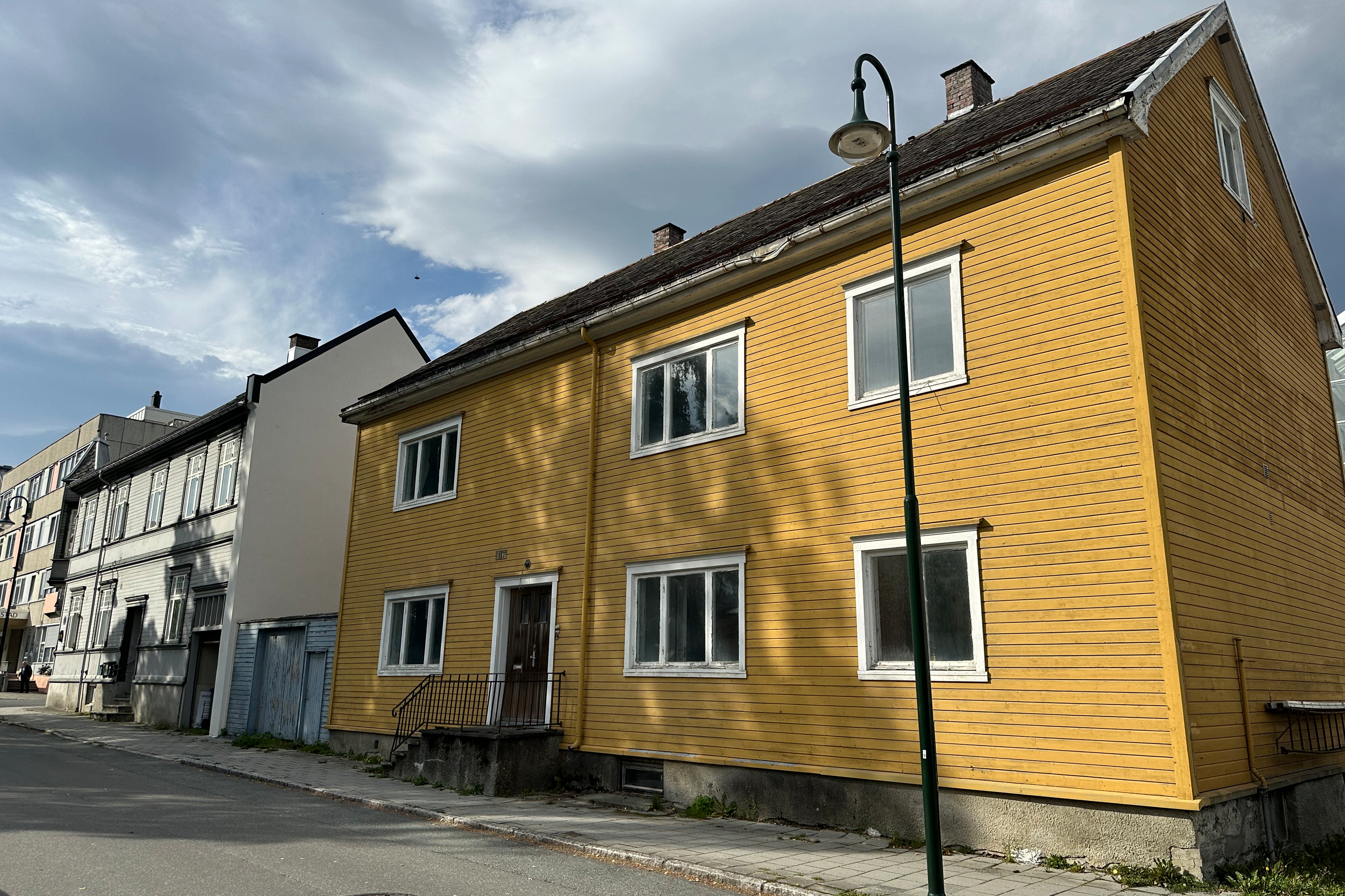 På den andre siden av jernbanestasjonen ser jeg opp mot en stor gul bygård i byens fredningsområde. Mye tyder på at Jernbanegata 19, også kjent som Rolfsjordgården (oppført i 1900 etter bybrannen i 1897 av arkitekt Andreas A. Brobakk), skal bli en del av Fortidsminneforeningens Husbruk-portefølje.
