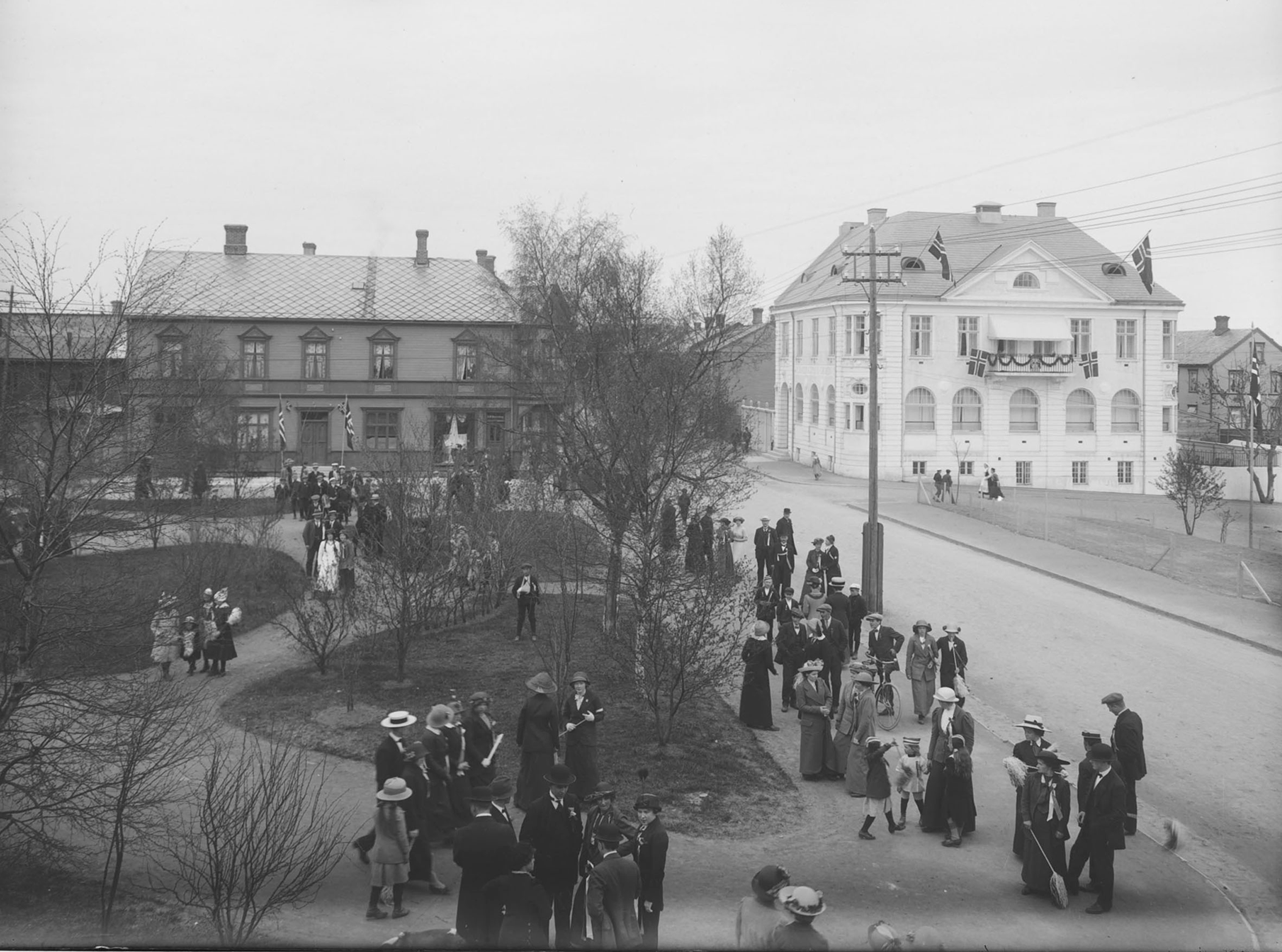 Mot slutten av rusleturen i byen stopper jeg og byantikvar Tove Nordgaard i Øvre Park som nå har blitt omdøpt til Sejersteds Park. I Forslaget til Forvaltningsplan Levanger kulturmiljøplan skrives det at Øvre Park har i stor grad det samme uttrykket i dag som den hadde rundt forrige århundreskifte, i 1900. På denne dagen er det fortsatt farge på blomstereng og grønnvekst rundt fontenen. – Den historiske parkaksen er byens hjerte. En kvalitet til byrommet, sier hun.