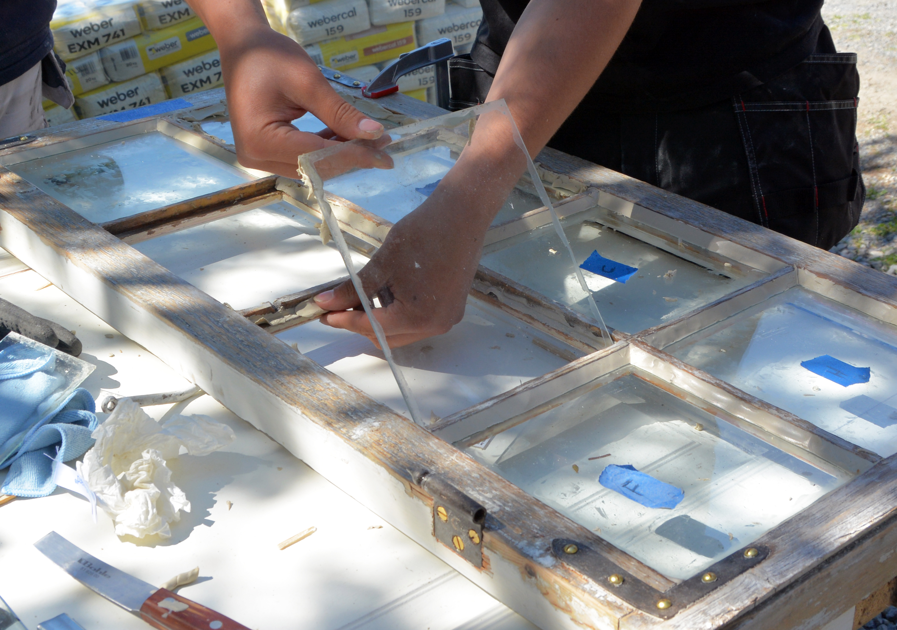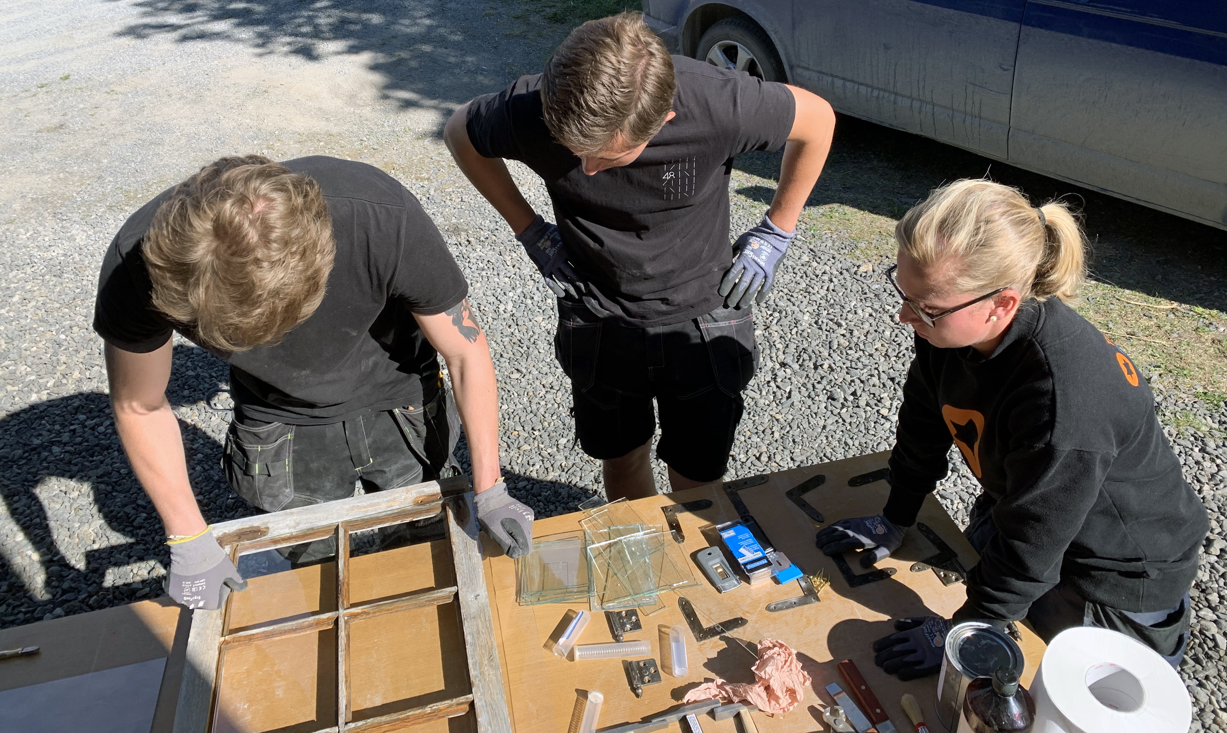 Kitt, linolje, gammelt treverk, gamle glass og beslag er nye erfaringer for gruppen disse dagene. Å bli introdusert for materialkvaliteten i kombinasjon med antikvarisk tenkning åpner nye tankevinduer for gjengen. Tenk at vinduer med en slik alder fortsatt kan være i tipp topp stand! At de eldre vinduene har en potensiell levetid som overgår alle nyproduserte vinduer overrasker.