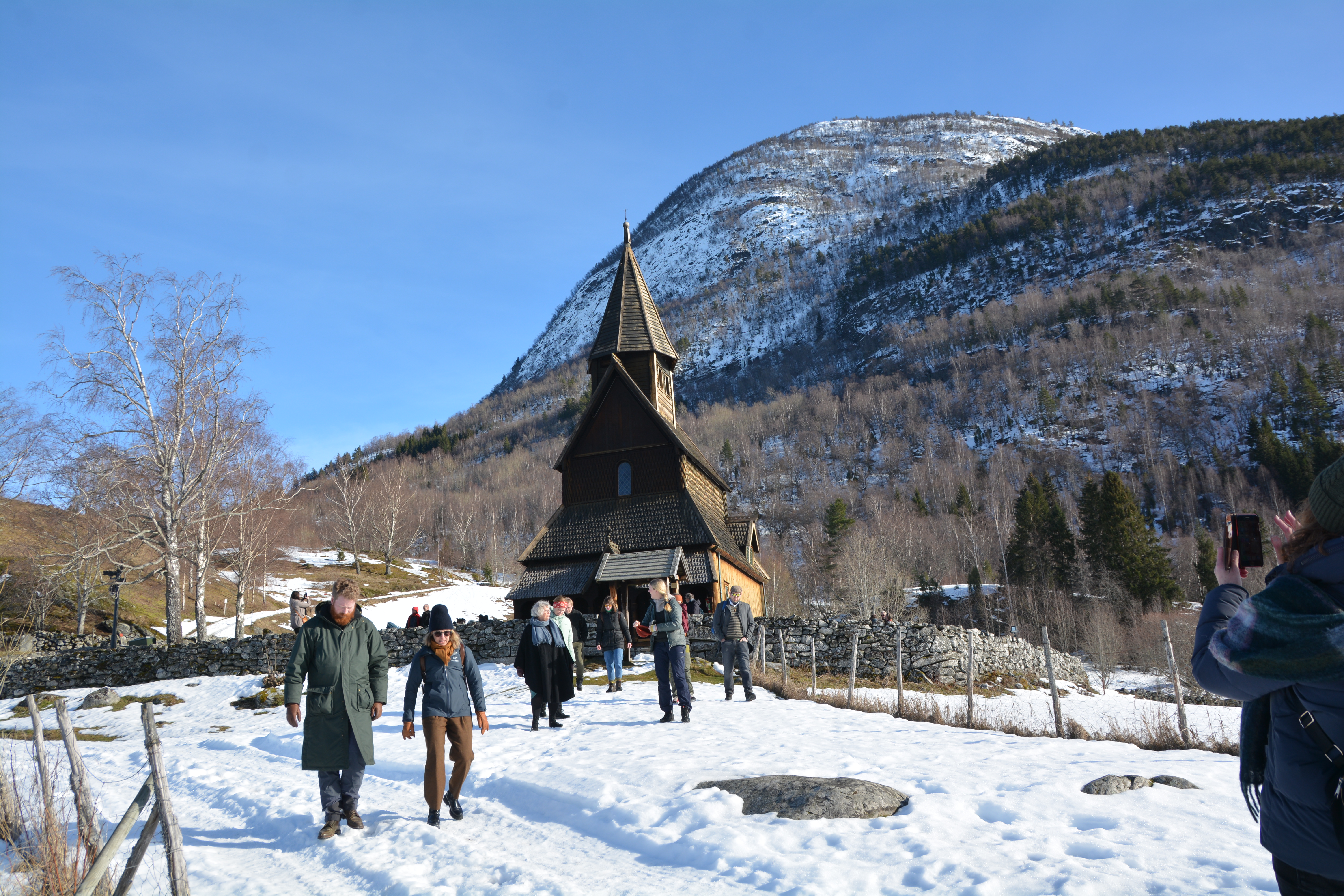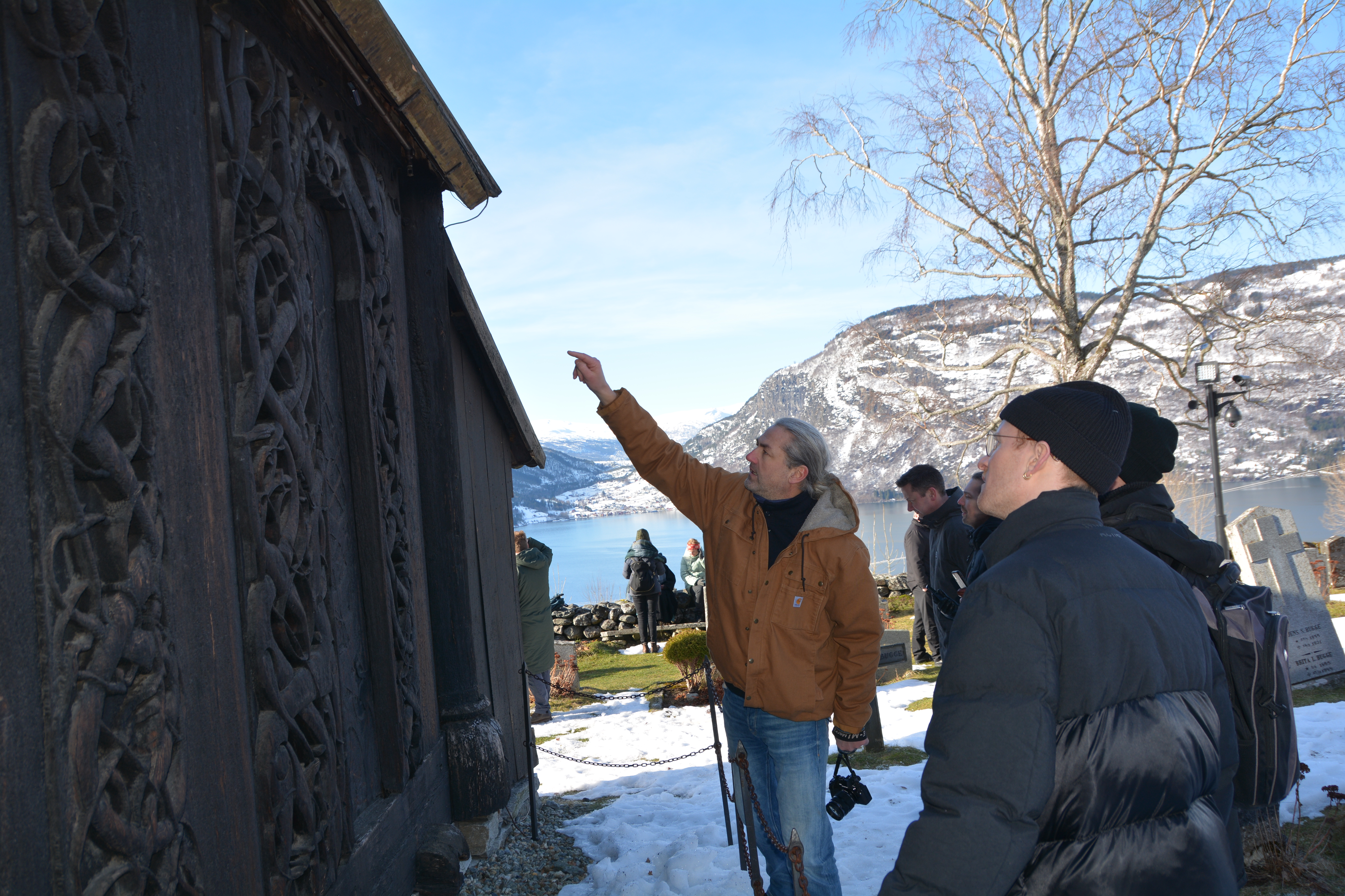 Arkitektane bak vinnarutkasta, jurymedlemmer og inviterte gjester vart tatt med på vandring gjennom dette unike kulturlandskapet. Frå ferjeleiet i Ornes gjekk turen til fots opp til tomta der verdsarvsenteret skal byggast. Så venta stavkyrkja, som ingen av dei besøkande arkitektane hadde opplevd før.