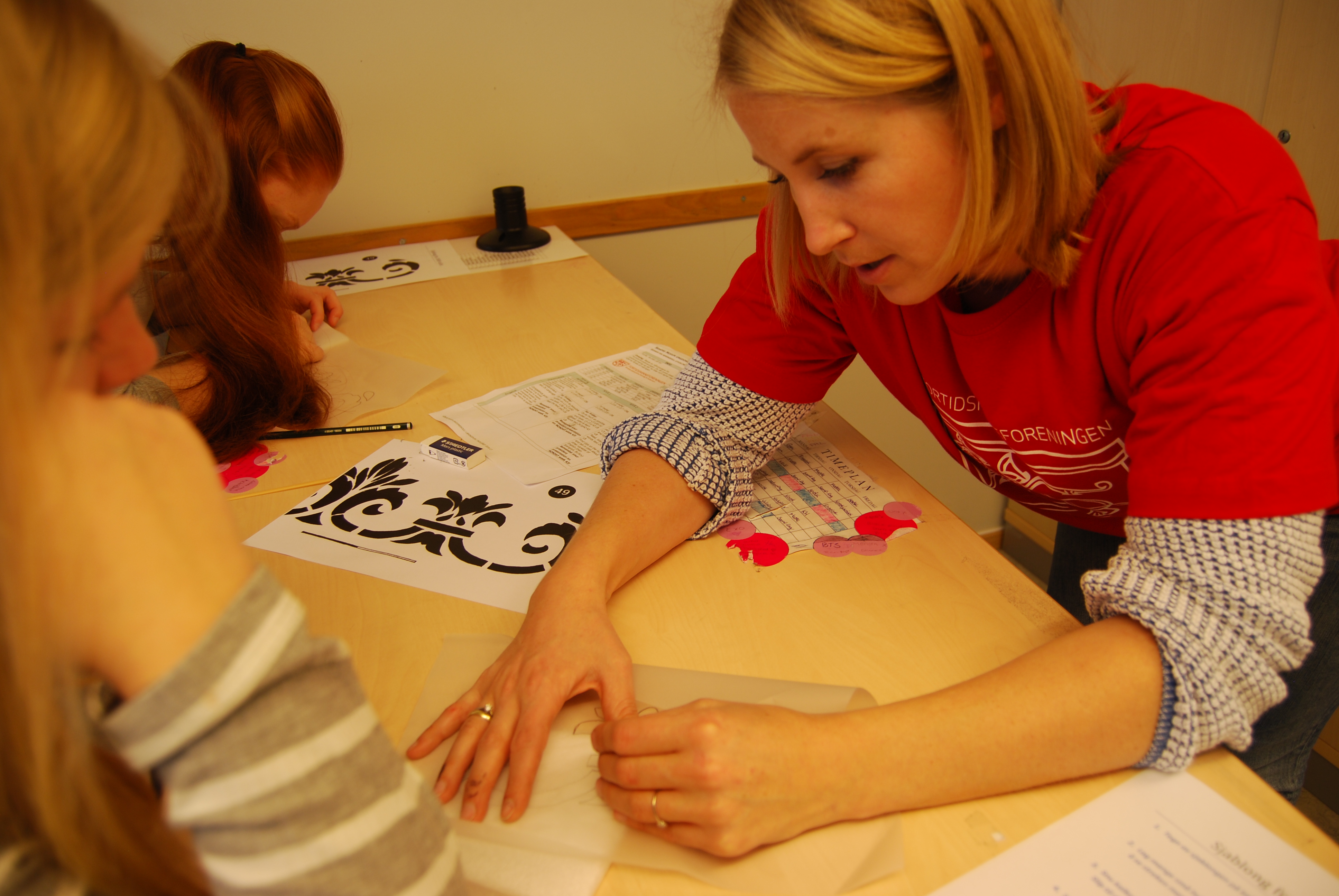9. trinn ved Søndre Modum Ungdomskole fikk besøk av tradisjonsbærerne Audun Eken og Cecilie Breen til inspirasjonsdag. Elevene fikk prøve seg på tømring sammen med laftetømrer Audun. Og malemester Cecilie lærte dem å male med sjablong.