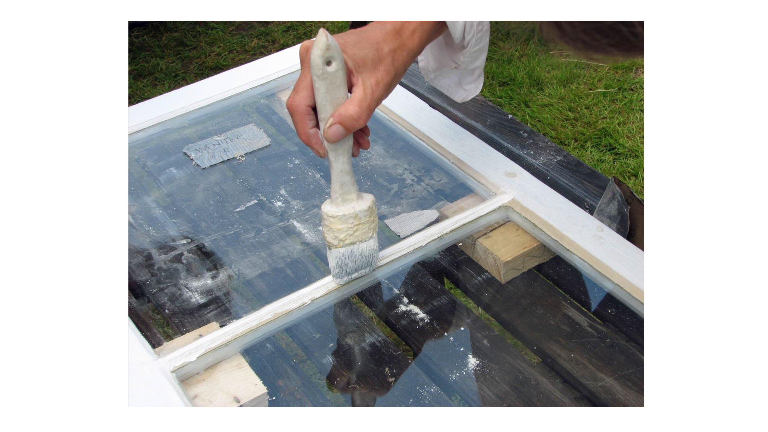 Det er viktig å grunne rammen med første malingslag umiddelbart etter at linoljen er innvarmet i trevirket. Det er også hensiktsmessig å male rammene med mellomstrøkmalingen før glasset settes inn.