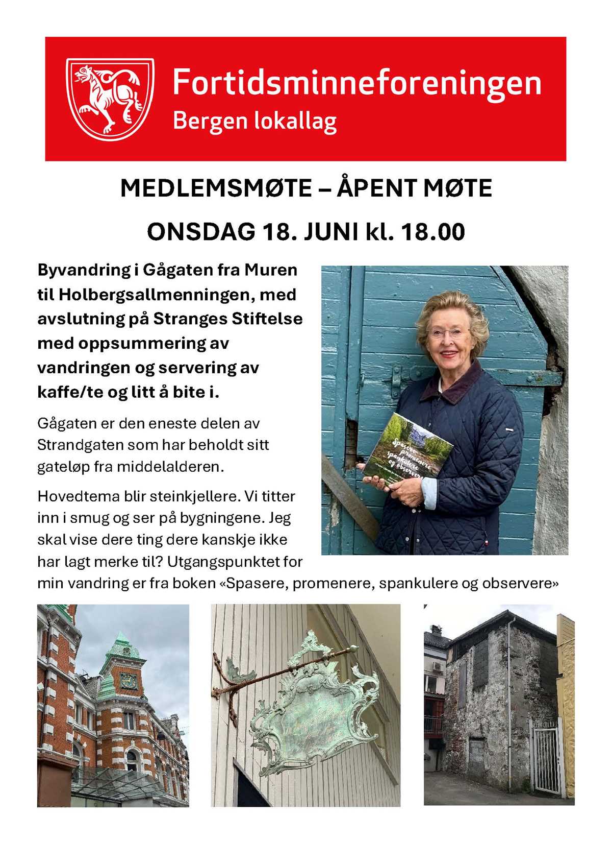 Inger-Lise Skarstein tar deg med på vandring i bergenske smug 18. juni kl. 18.00