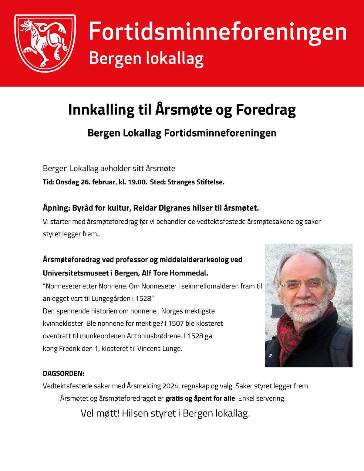 Velkommen til årsmøte i Stranges Stiftelse som etterfølges av foredraget "Nonneseter etter Nonnene" av Alf Tore Hommedal.