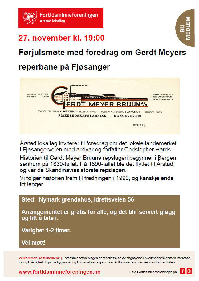 Førjulsmøte med foredrag om Gerdt Meyers reperbane på Fjøsanger
