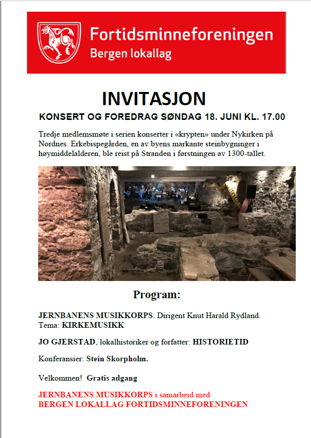 Konsert og foredrag Publisert 07.06.2023 Bergen lokallag inviterer til konsert og foredrag i krypten under Nykirken på Nordnes.