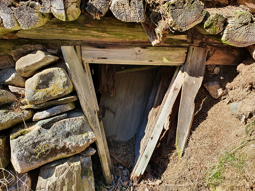 • Jordkjelleren består natursteinvegger nedgravd i bakken, med et buet takhvelv av rundstokker som er dekket med never og jord.