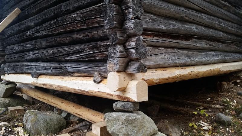 Utskifting av tømmer i bygning som står oppe. Kurset på Stølsvidda går over 24 timer totalt.