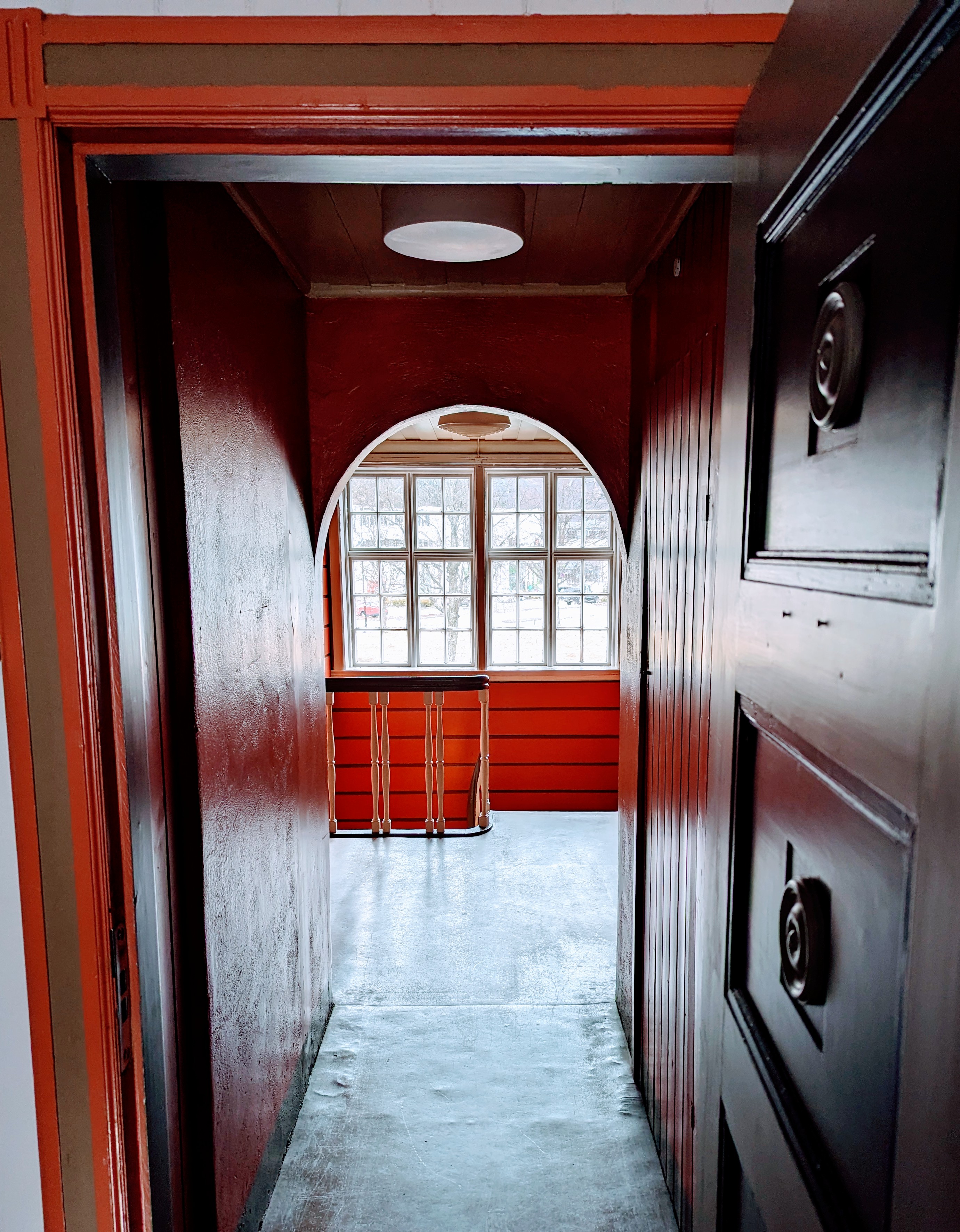 Ytterdøren har to egyptiskinspirerte løvehoder som også skal males opp med linoljemaling.