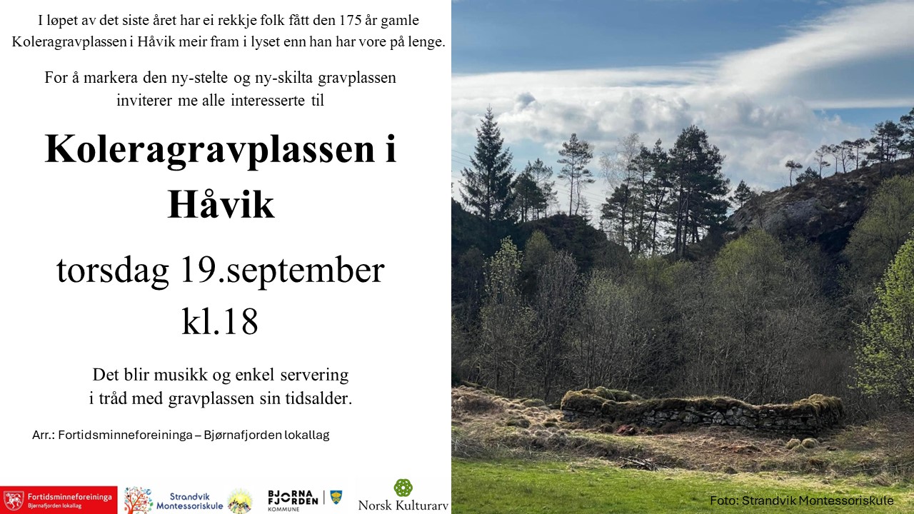 Bjørnafjorden lokallag inviterer til markering av nyrydda koleragravplass i Håvik