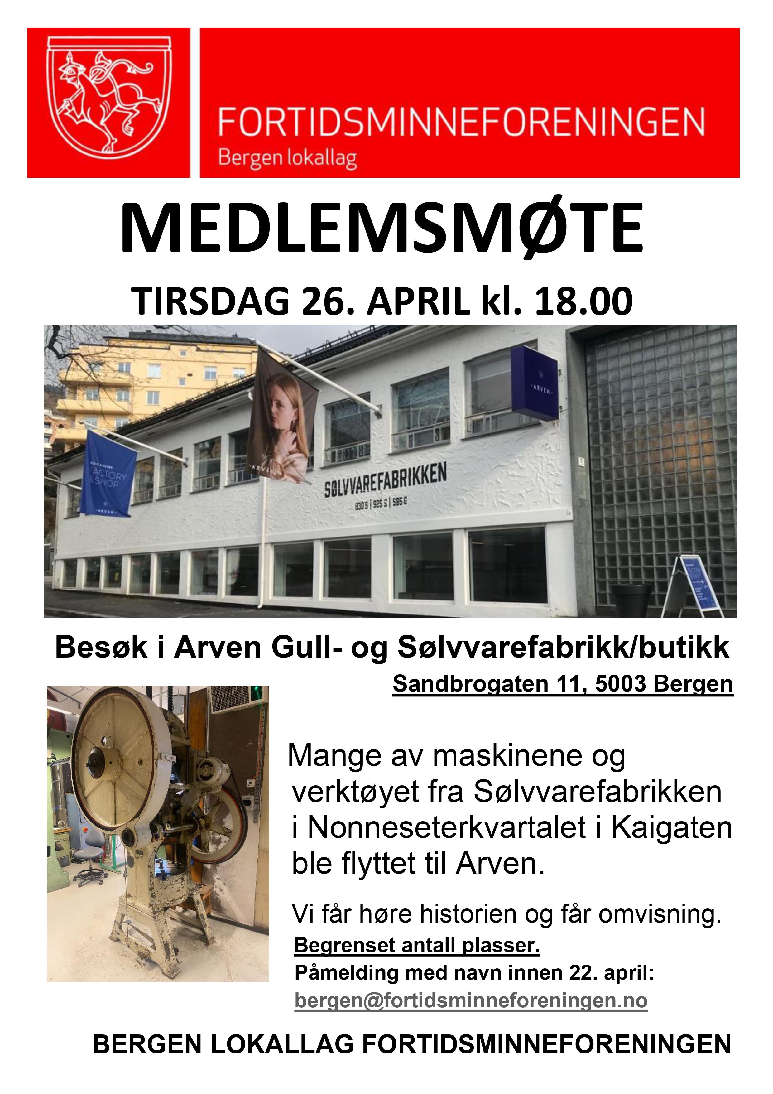 Besøk og omvisning i Arven Gull- og Sølvvarefabrikk. Tirs. 26.april kl 18.00