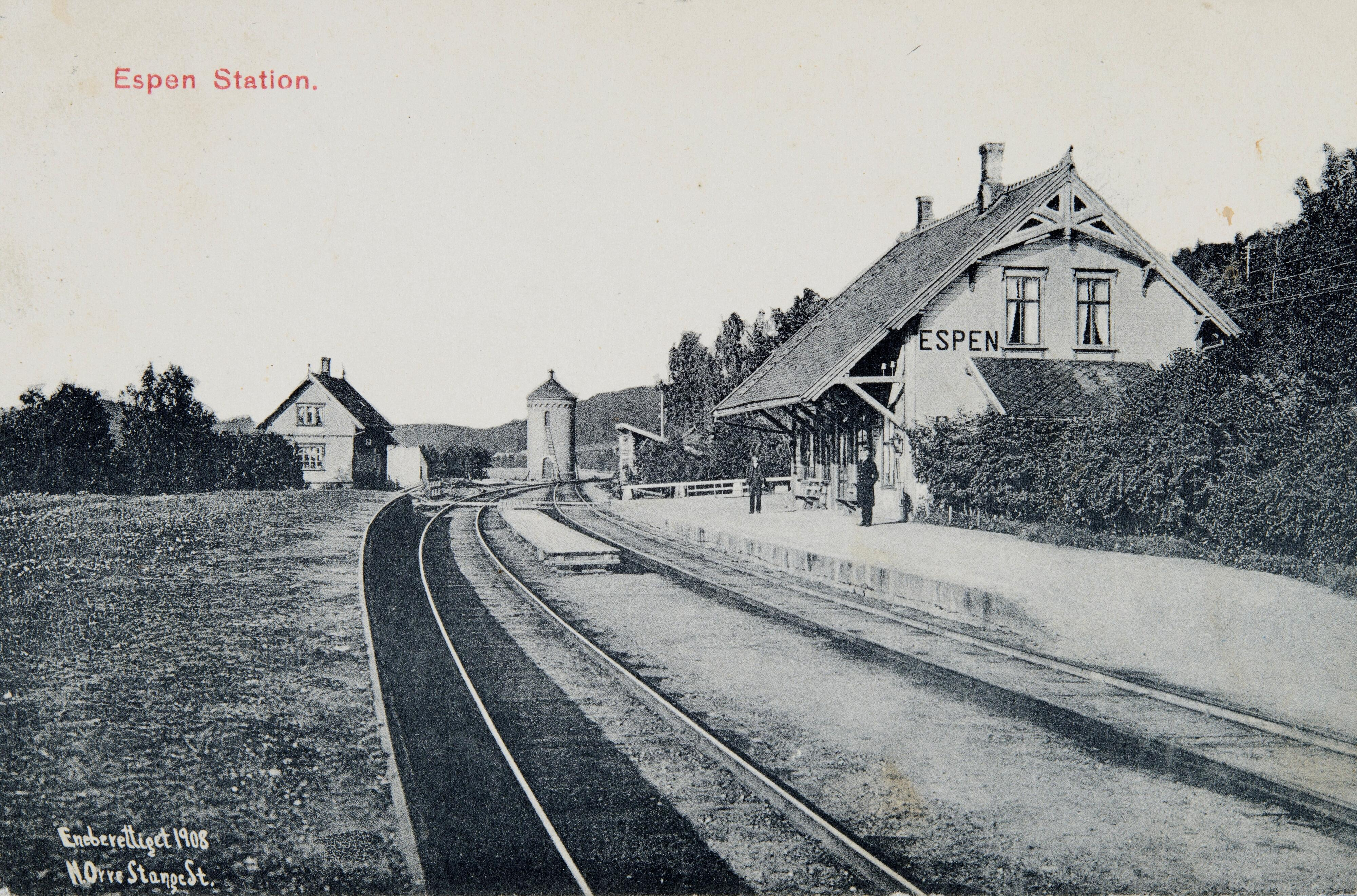 Bygningen er tegnet av arkitekt Peter Andreas Blix i 1877, som en vokterbolig «type Z», og sto ferdig til åpningen av Espen stasjon på Hedemarksbanen mellom Eidsvoll og Hamar i 1880 (i dag del av Dovrebanen). I 1922 skiftet stasjonen navn til Espa og ble fjernstyrt fra 1965. Fra 1980 har det kun vært fjernstyrt krysningsspor her. Vokterboligen ligger mellom jernbanesporet og Mjøsa, direkte tilknyttet friluftsområdet ned mot bryggene.